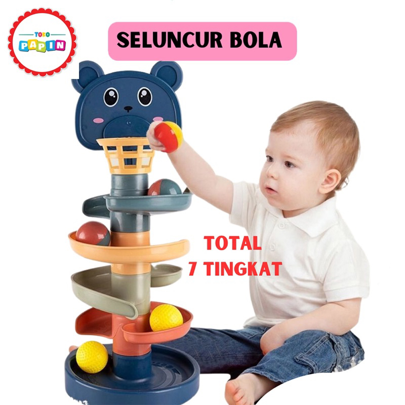 TOKOPAPIN MAINAN EDUKASI ANAK BAYI PUZZLE ROLLING BALL ROTATING SELUNCURAN BOLA RAIL KELERENG