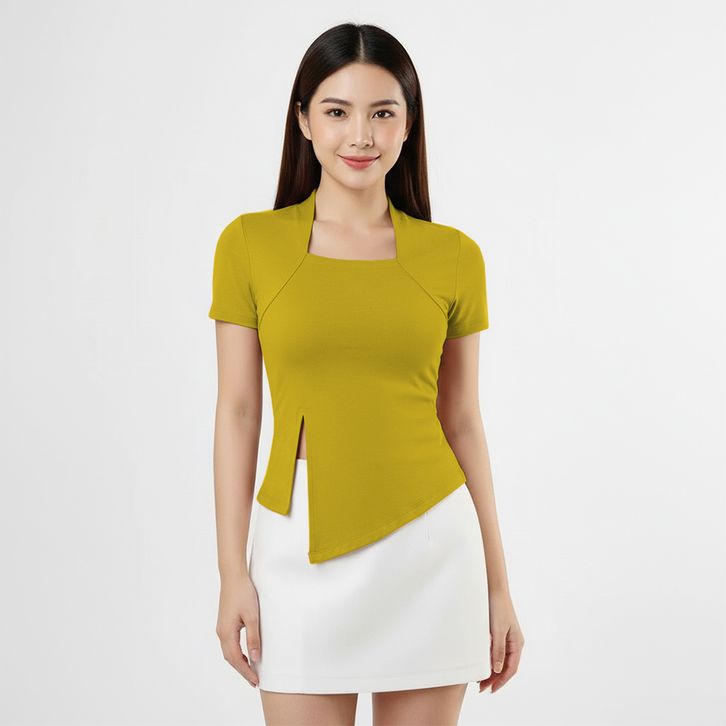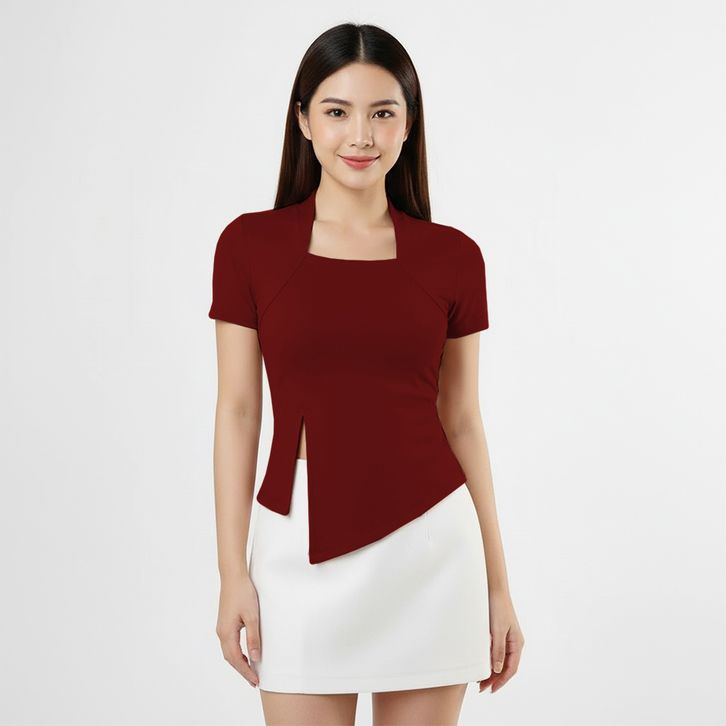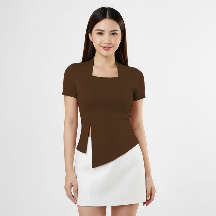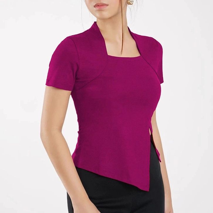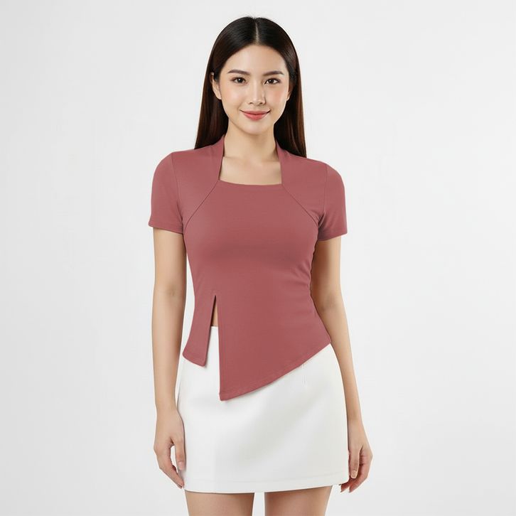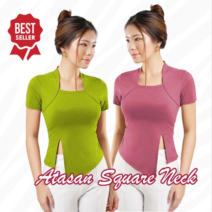Atasan Wanita Square Neck Model Belah Samping - Kaos Wanita Lengan Pendek 6034