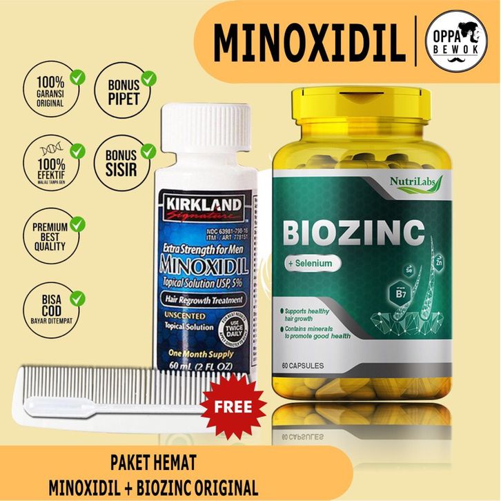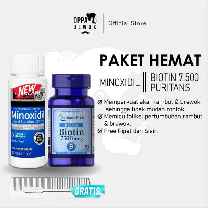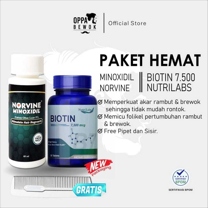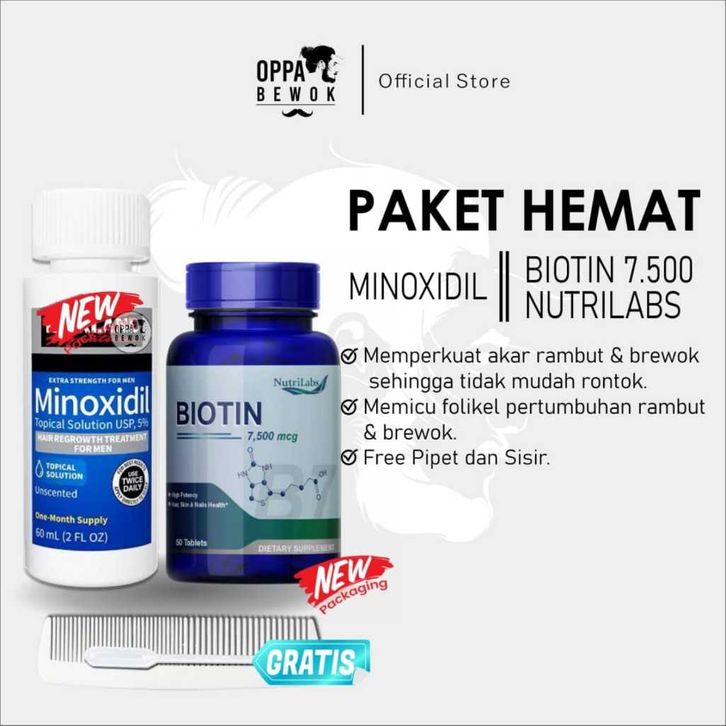 Serum Penumbuh Rambut PAKET HEMAT MINOXIDIL DAN BIOTIN 7500mcg Penumbuh brewok jenggot dan rambut