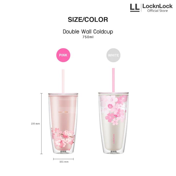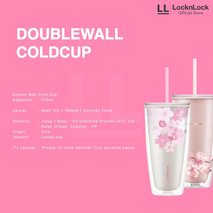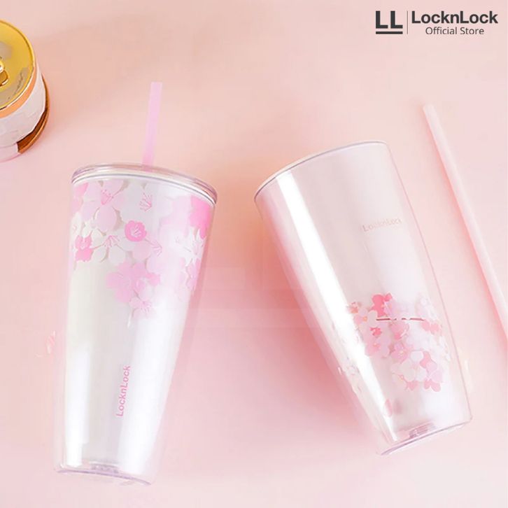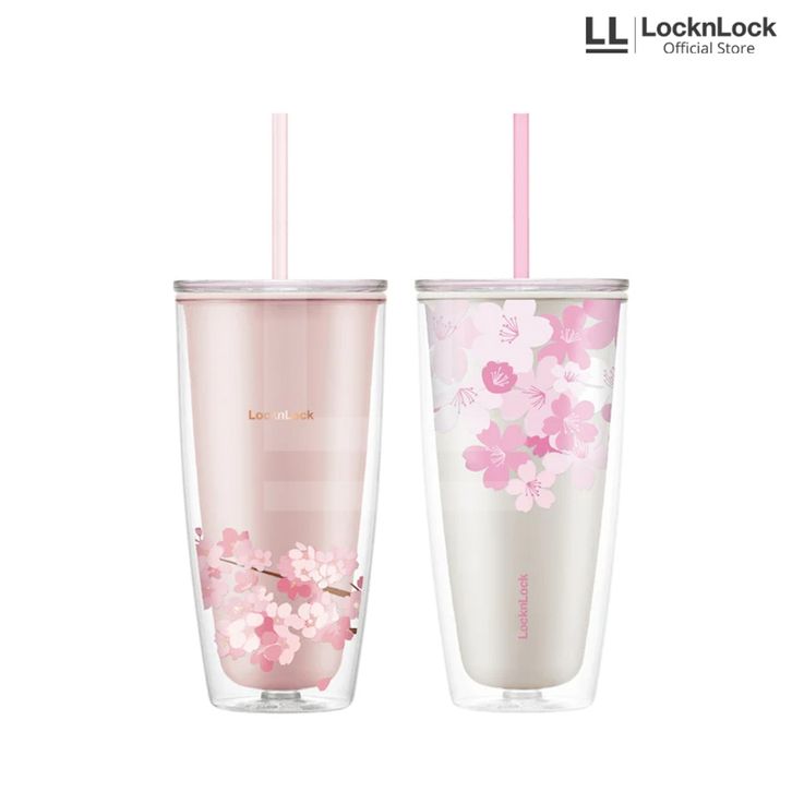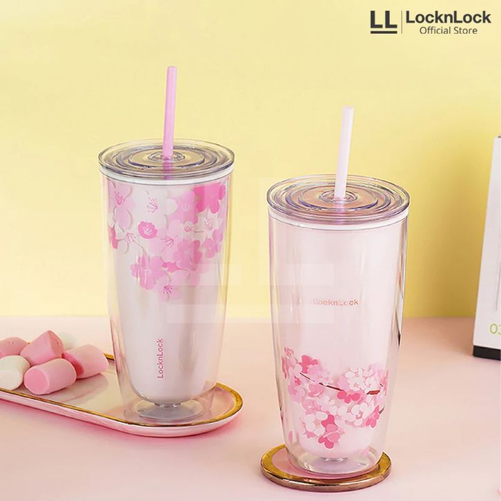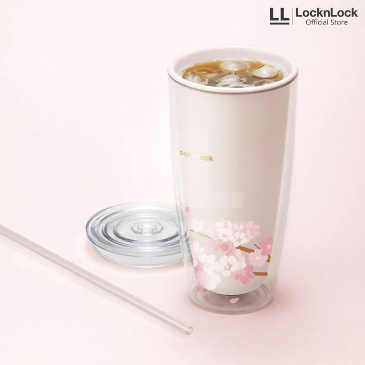 TERLARIS // TUMBLER PANAS DINGIN LocknLock Exclusive Botol Minum Double Wall Cold Cup Cherry Blossom - HAP509