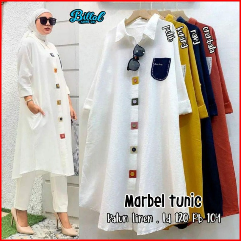 Marbel Tunic Katun Linen Terbaru Busui Friendly Tunik Wanita Ld 120 Big Size Kancing Aktif Atasan Cewek Dewasa Jumbo Pak