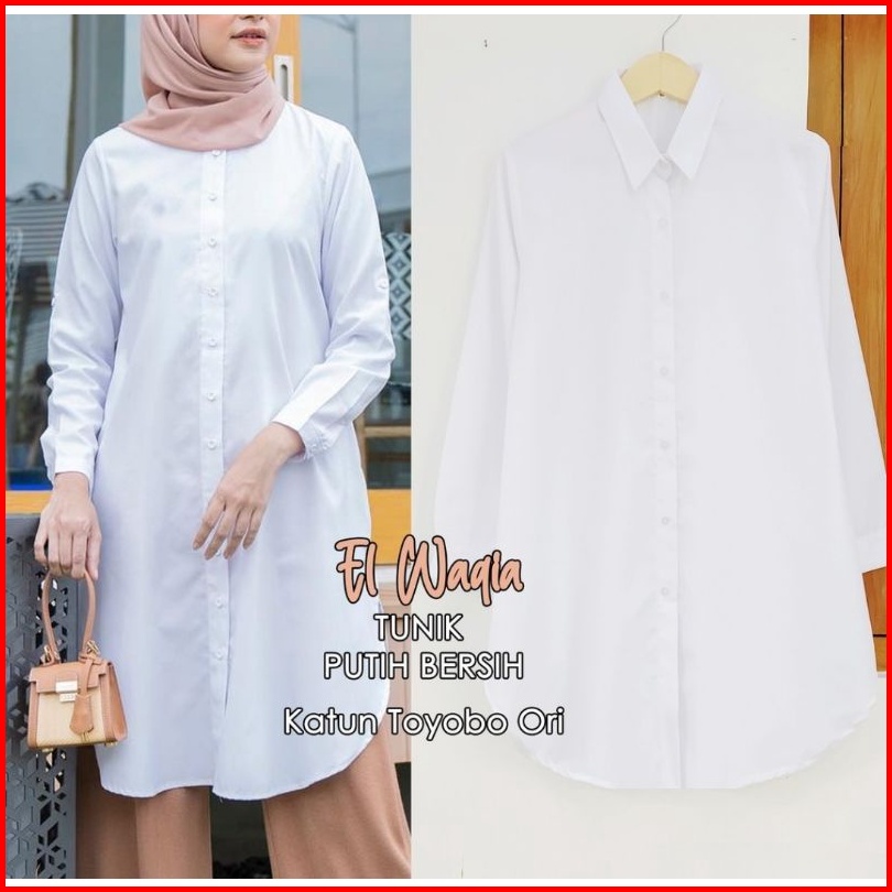 Tunik Putih Bersih Bahan Katun Toyobo Atasan Putih Baju Kerja Tunik Putih Jumbo Kemeja Putih