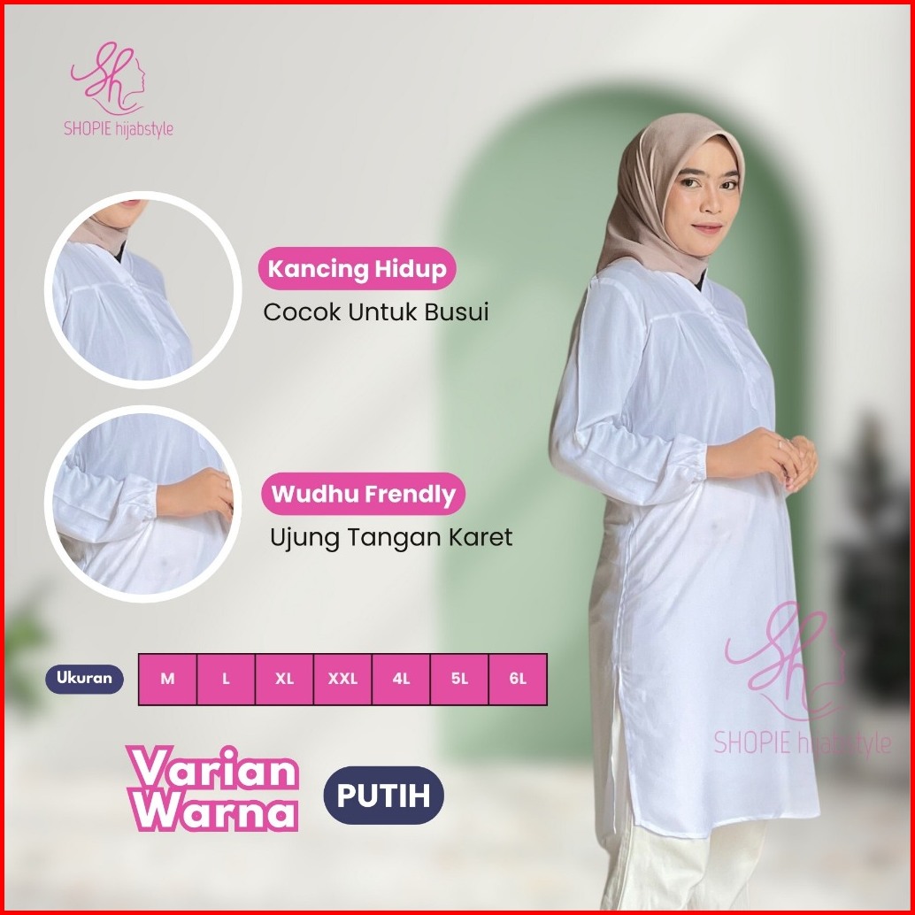 Tunik Polos Rayon White Wanita Terbaru Premium Kekinian Cocok Untuk Busui