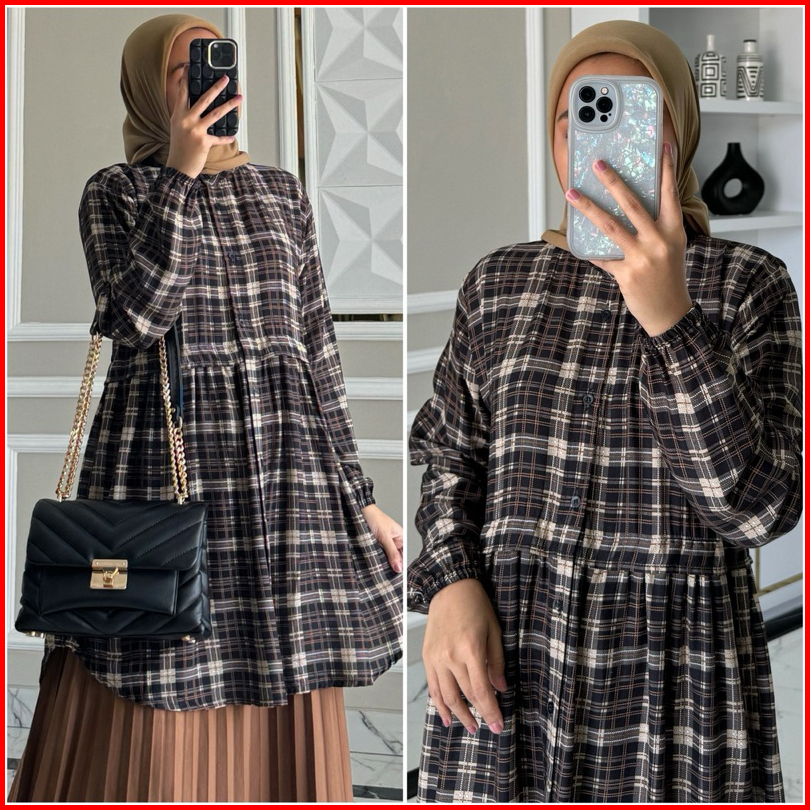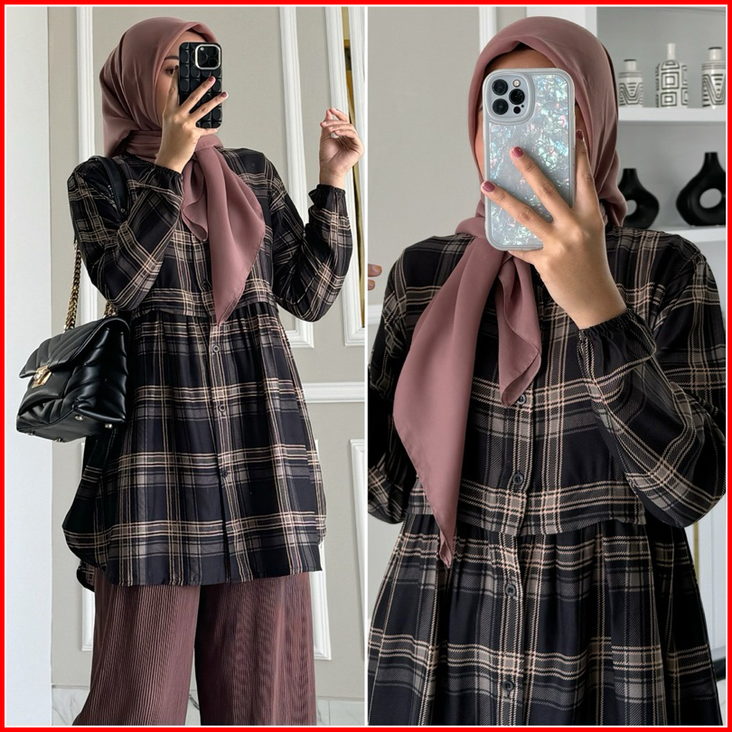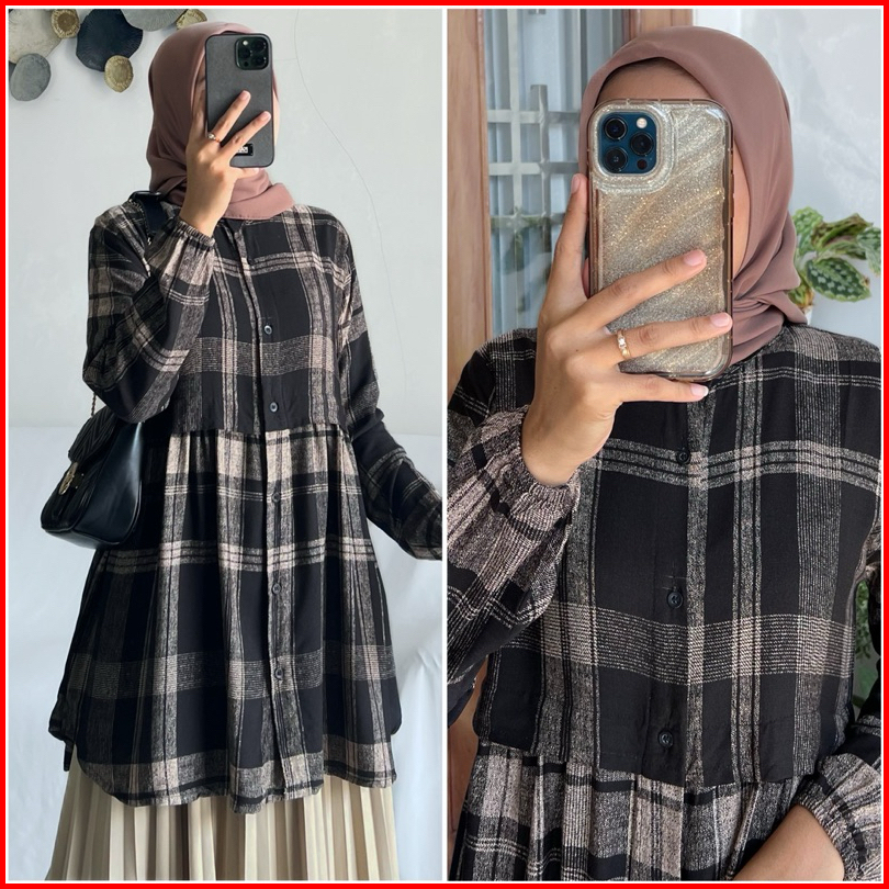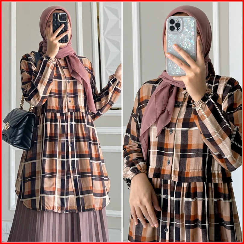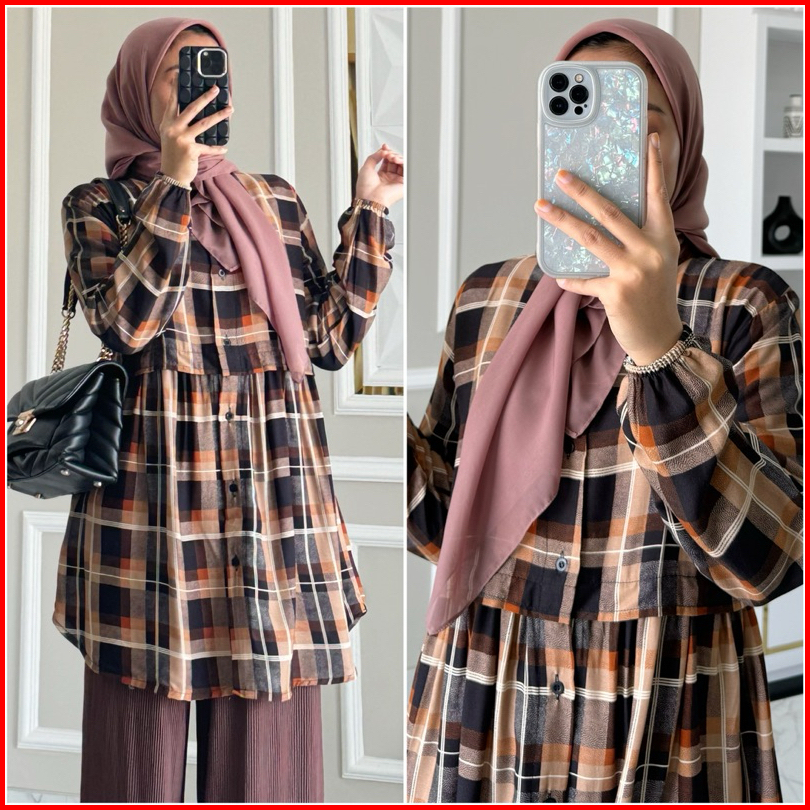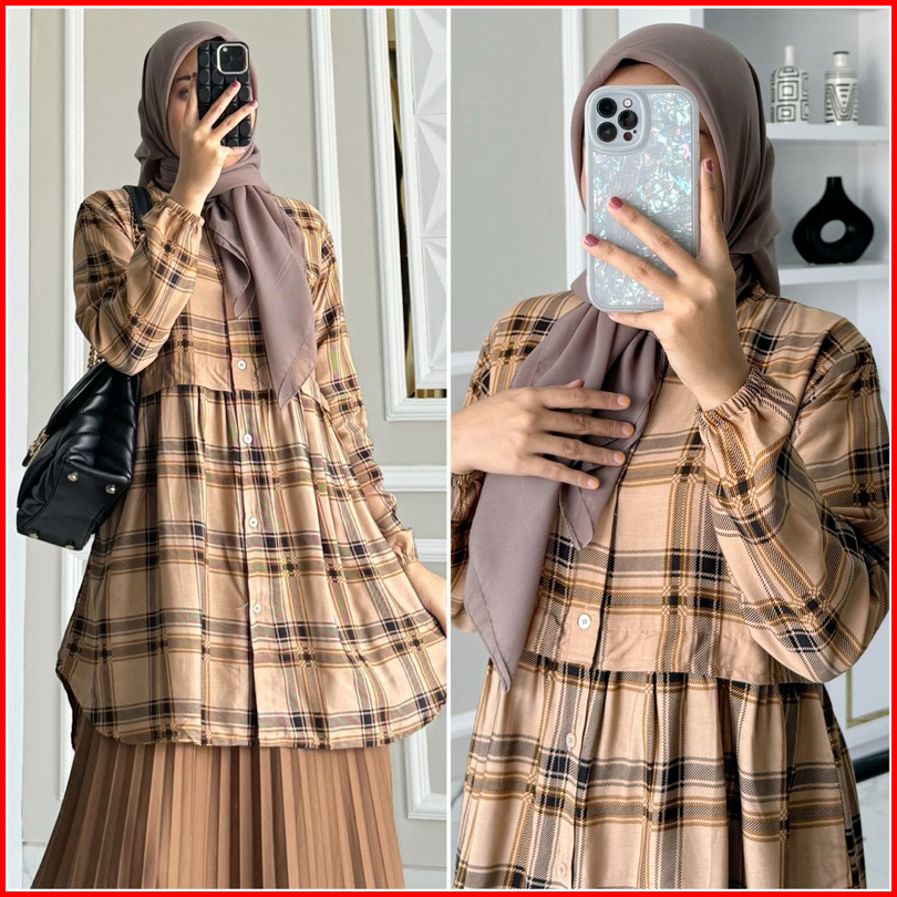 Vanela Blouse By Zalfa Outfit Baju Atasan Wanita Muslim Blouse Kerja Kuliah Basic Motif Rayon Premium Lengan Panjang Kar