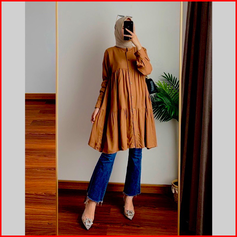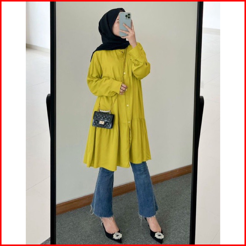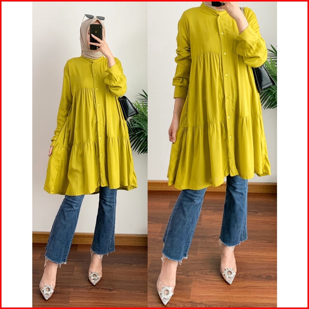 Popy Tunik Kancing Rempel Polos - Katun Rayon - Bahan Adem - Pakaian Wanita -