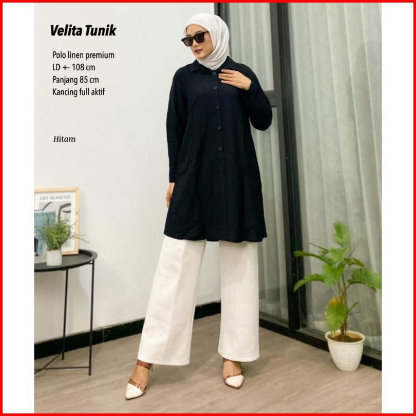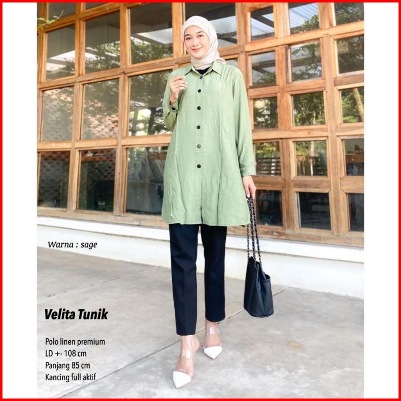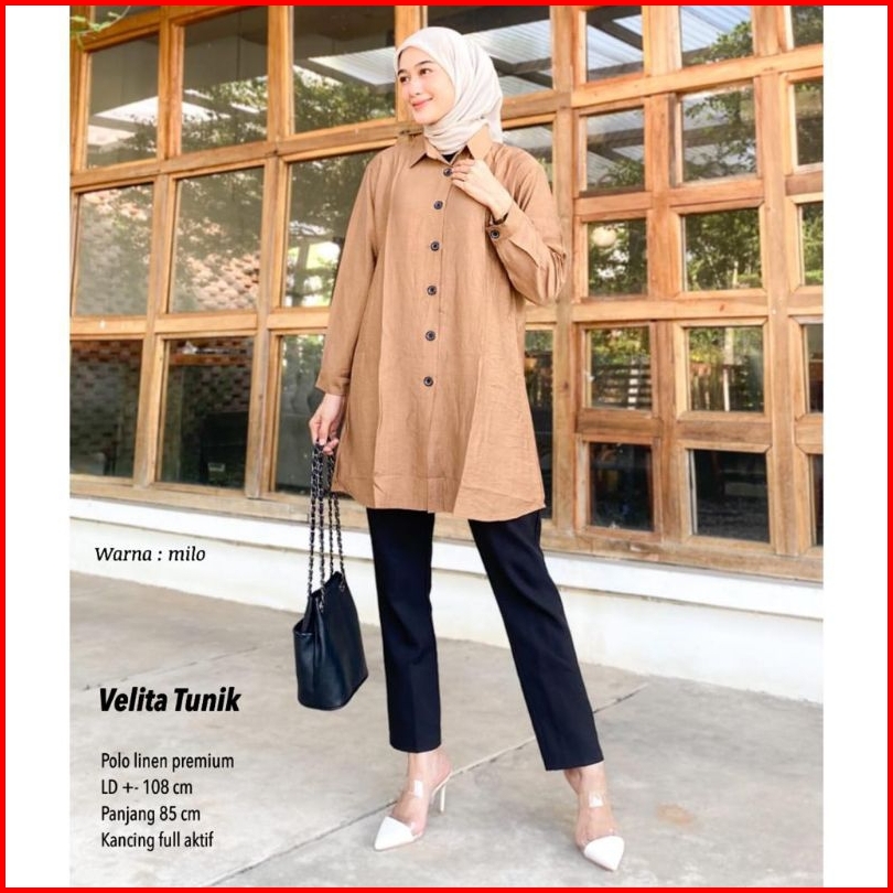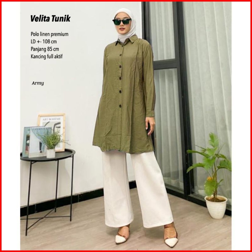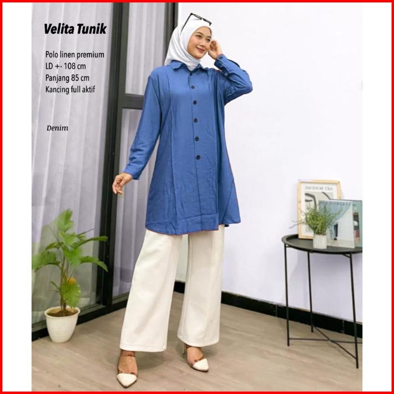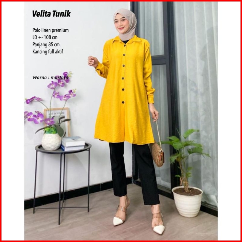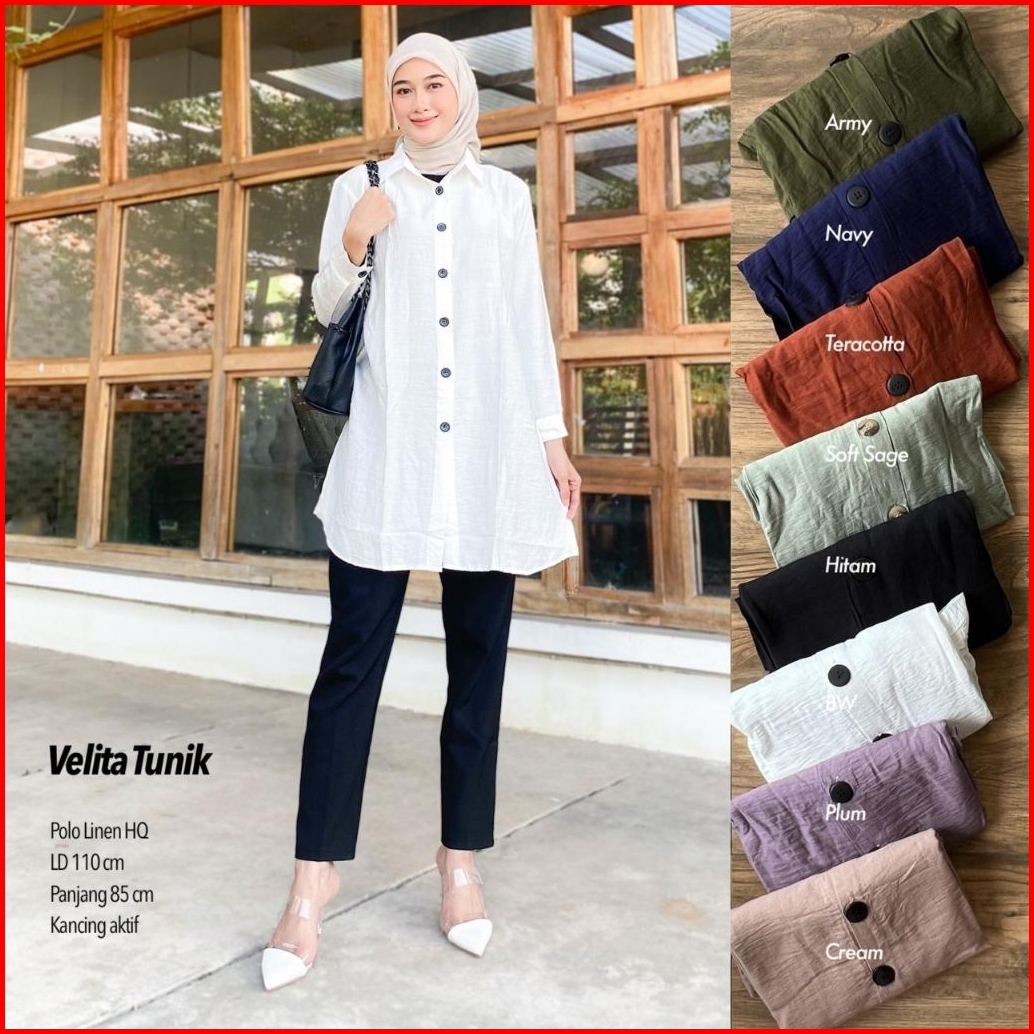 Velita Tunik Wanita Polo Linen Tunik Lebaran Tunik Terbaru