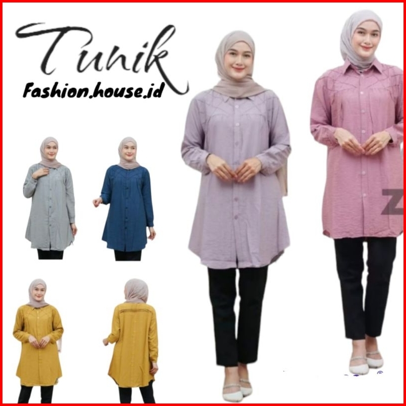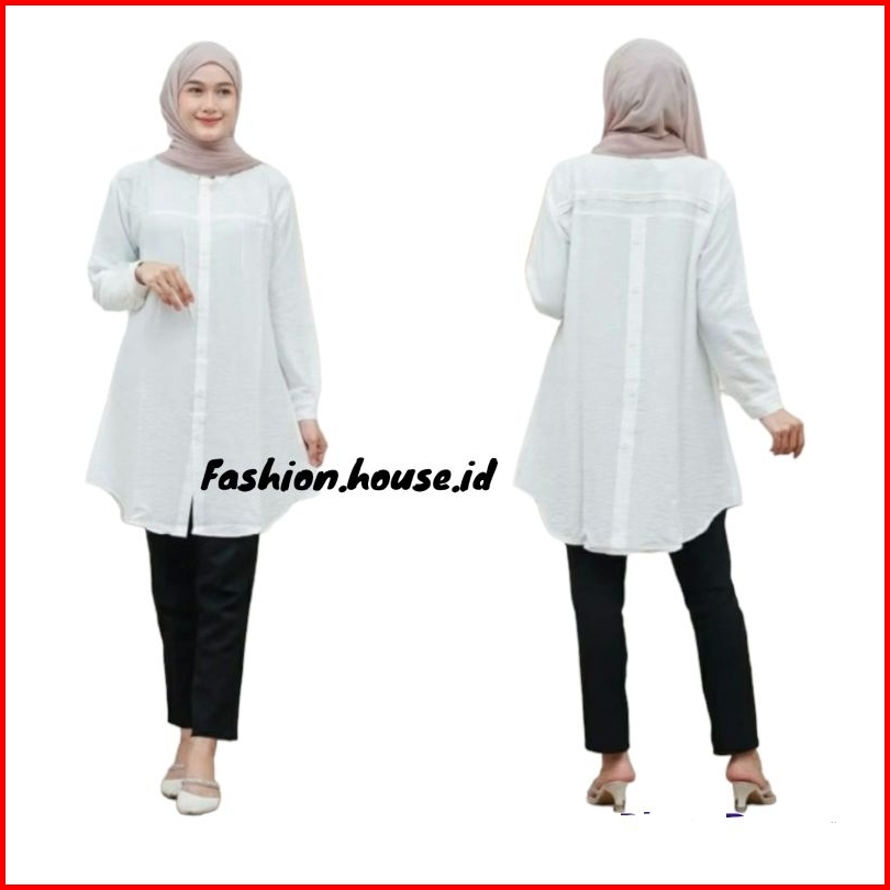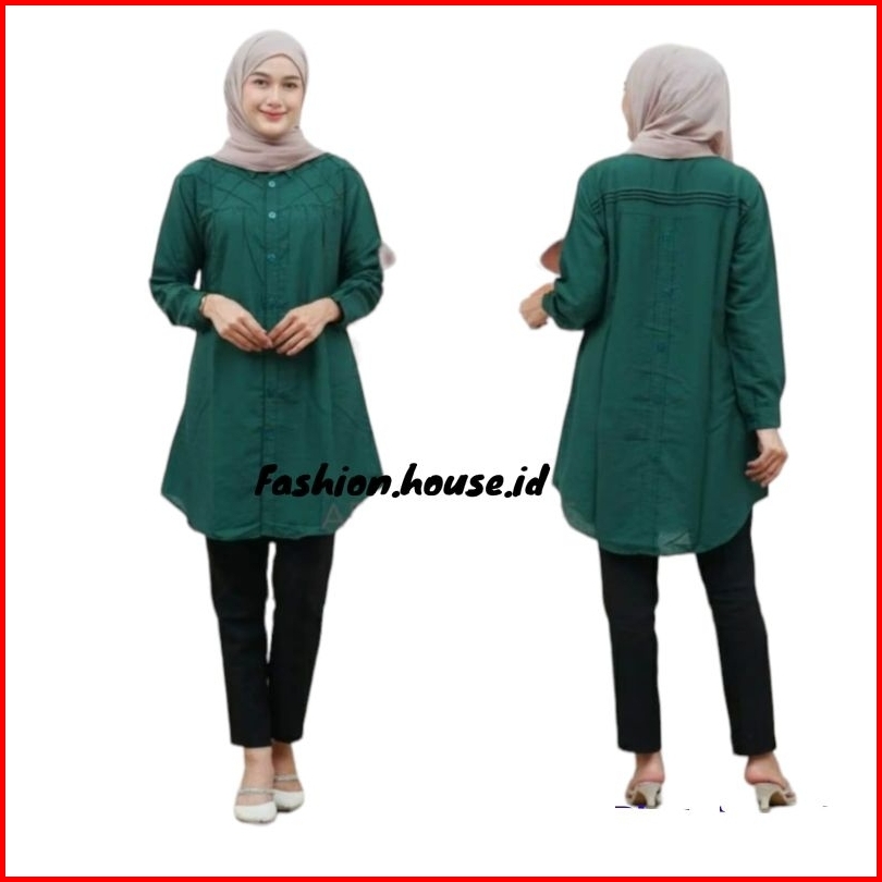 Yuna Tunik Remple Variasi Kotak-kotak Polo Linen Kancing Depan Belakang Kemeja Wanita Blouse Polos Polo Linen