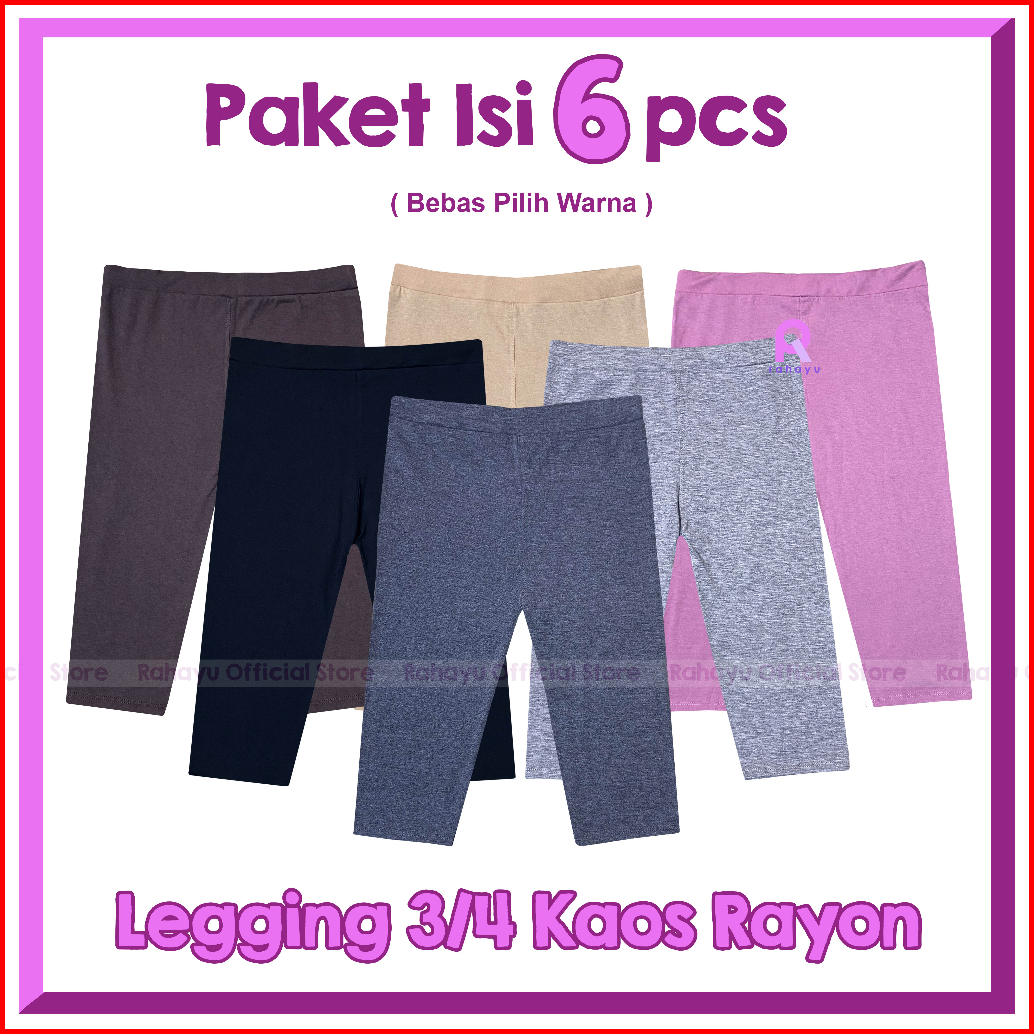 Paket Extra Legging 3 4 Kaos Isi 6pcs Celana Legging 3 4 Kaos Legging Pendek Kaos Rayon Celana Legging 3 4 Wanita