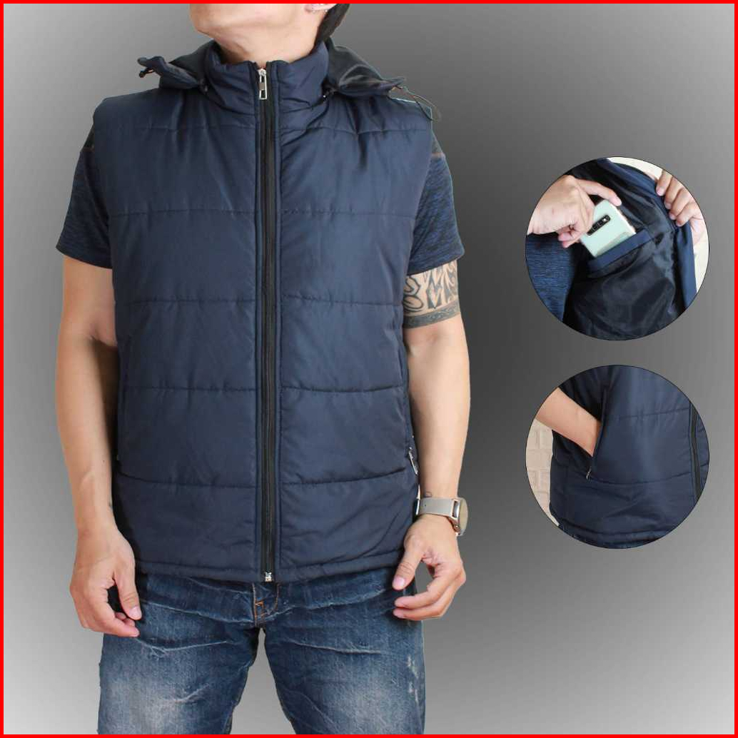 Rompi Pria Keren Hoodie Zipper Bahan Parasut Anti Angin