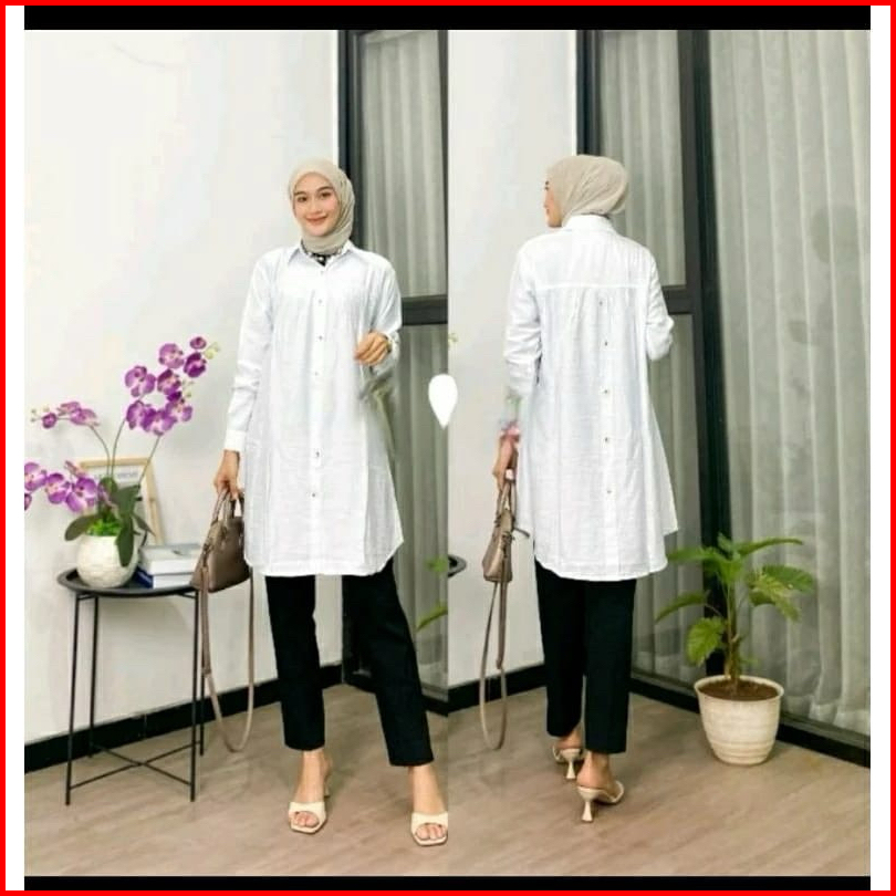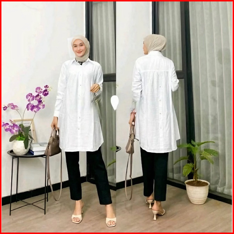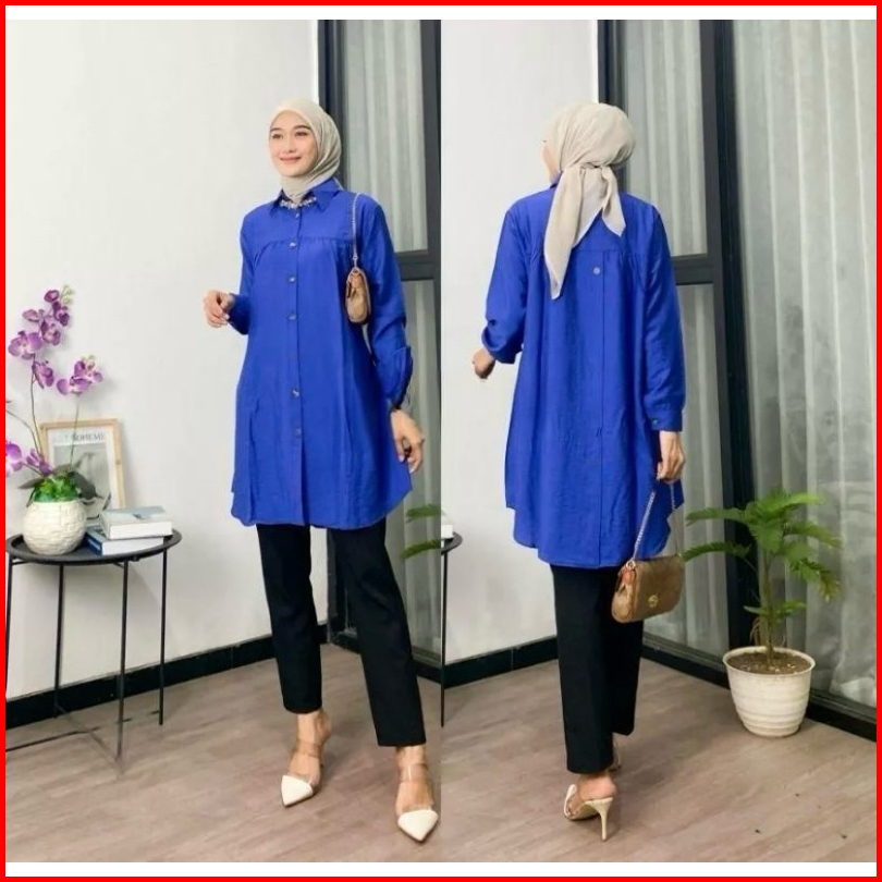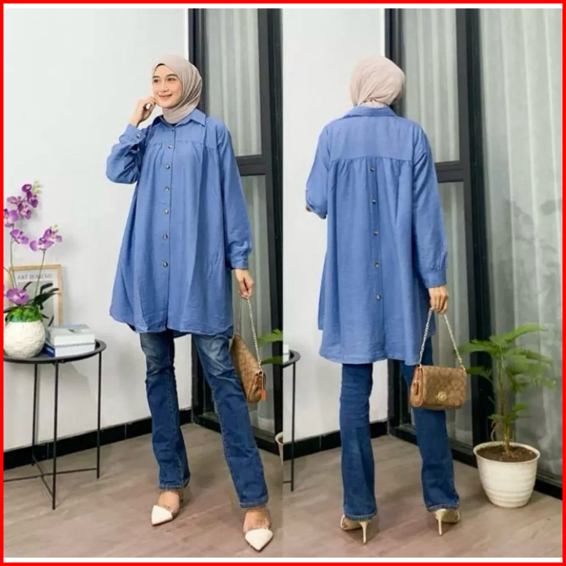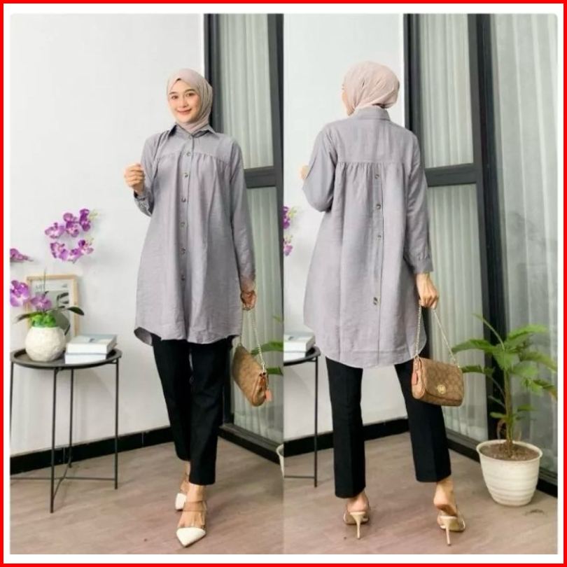 Zeva Tunik Polo Linen Variasi Kancing Belakang Tunik Polos Kekinian