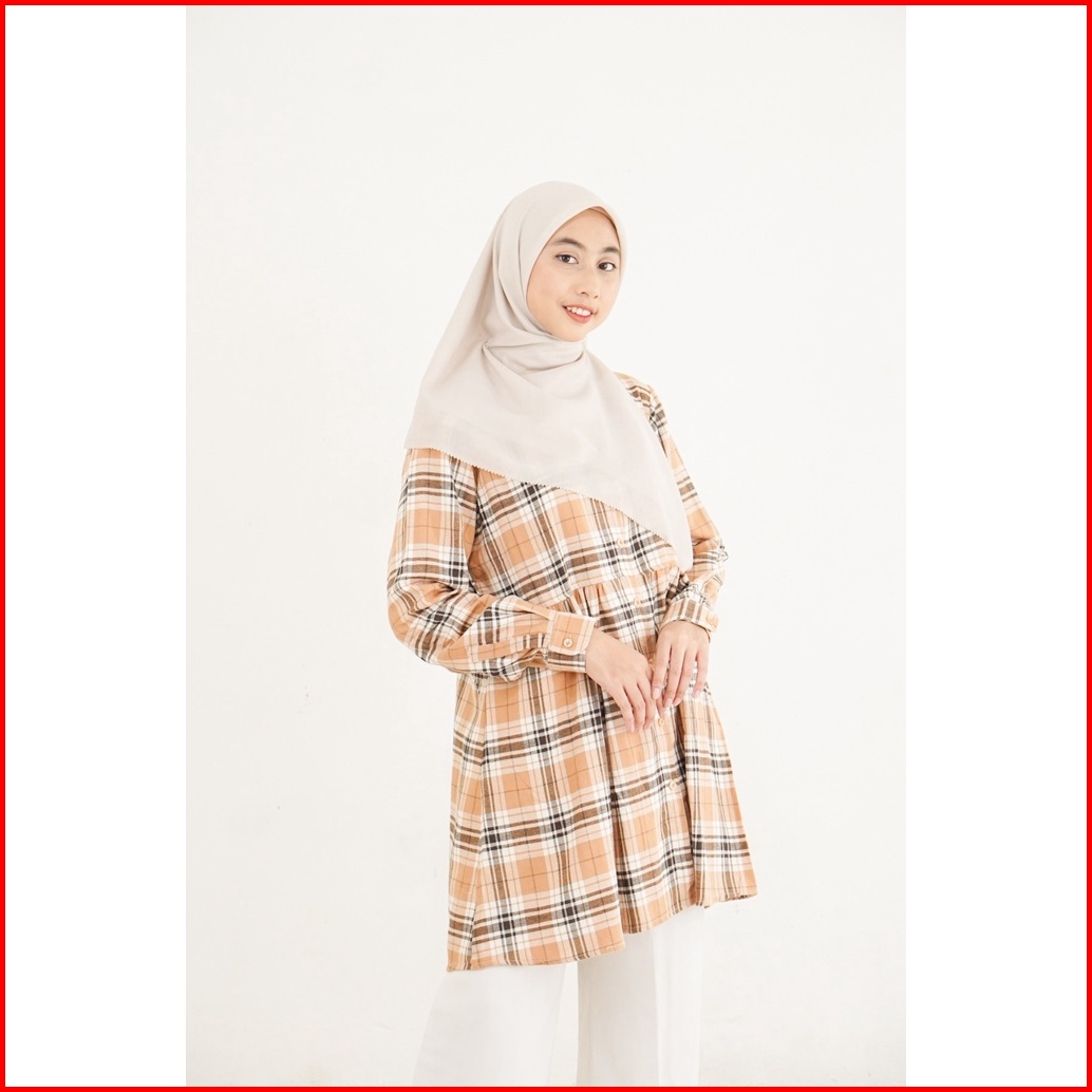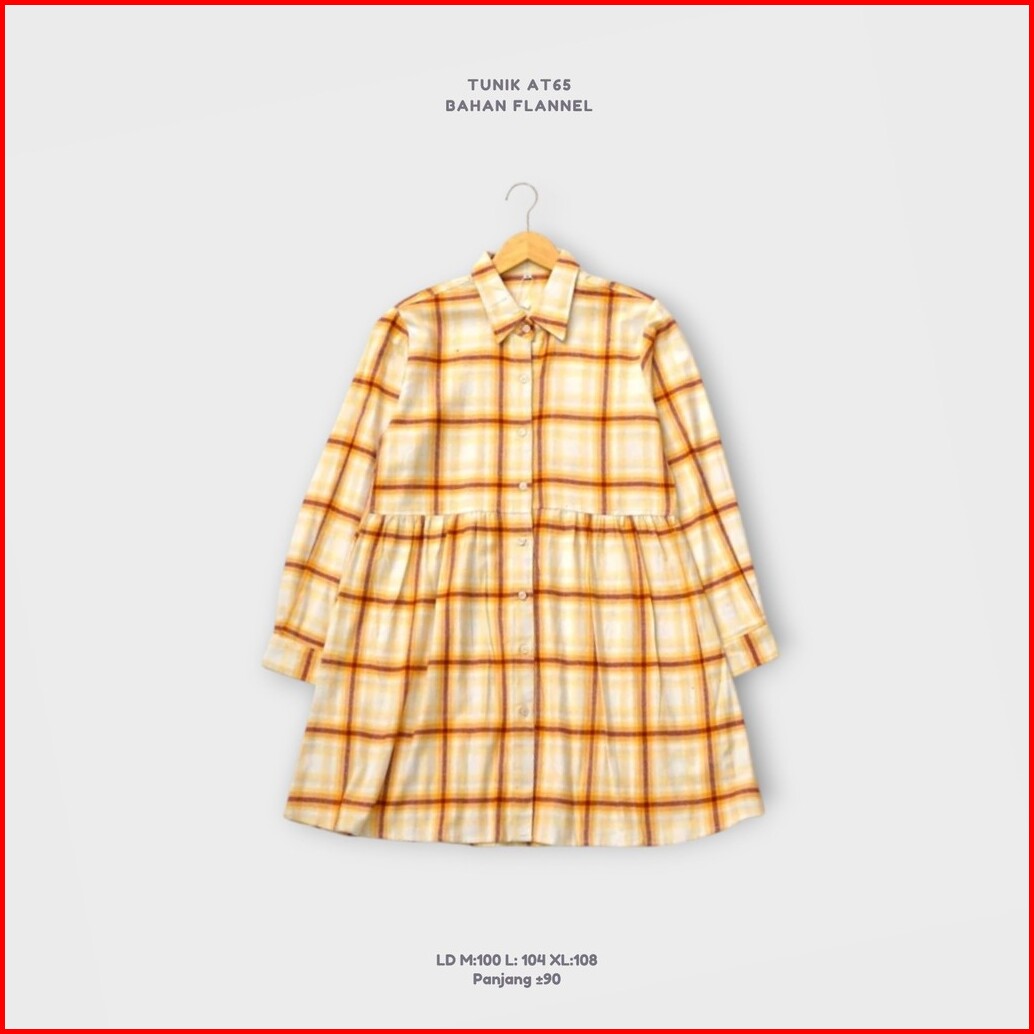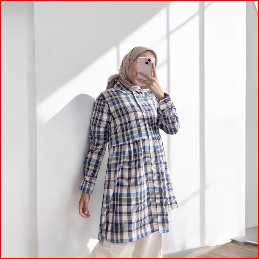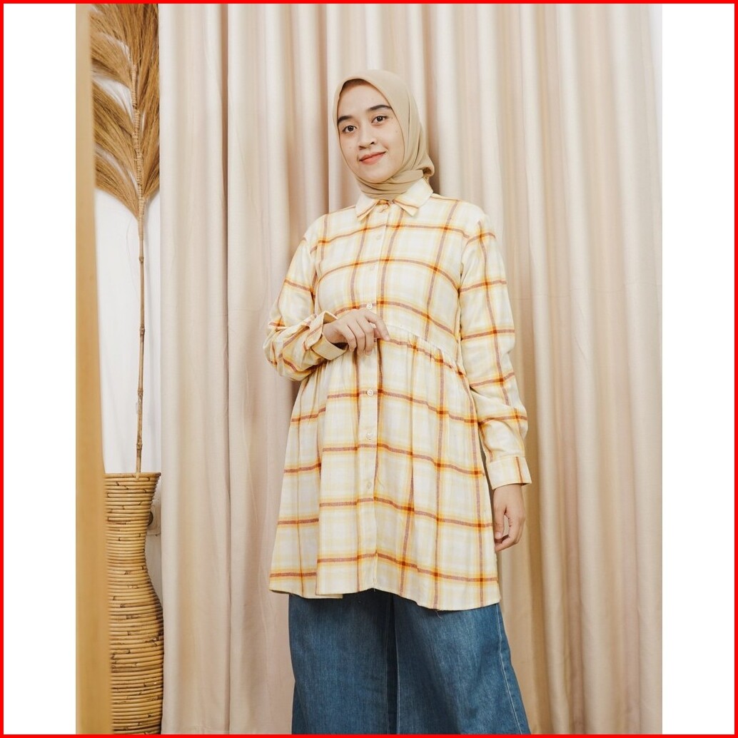 Anyostore At65 Tartan Kemeja Tunik Flannel Wanita Pakaian Atasan Flanel Import Lengan Panjang Motif Kotak Kotak