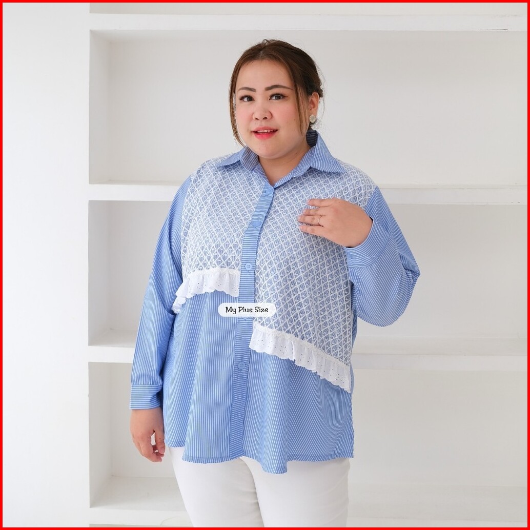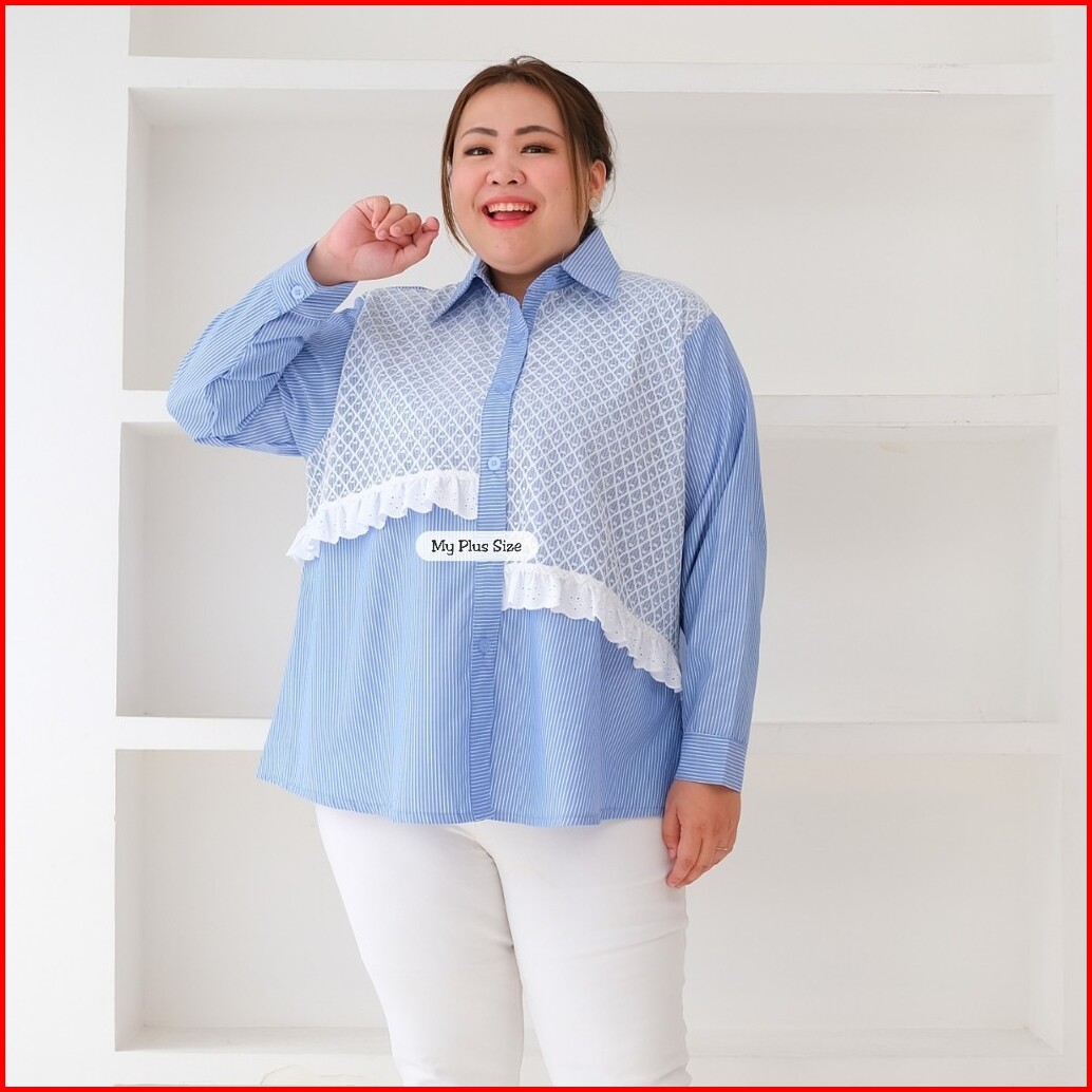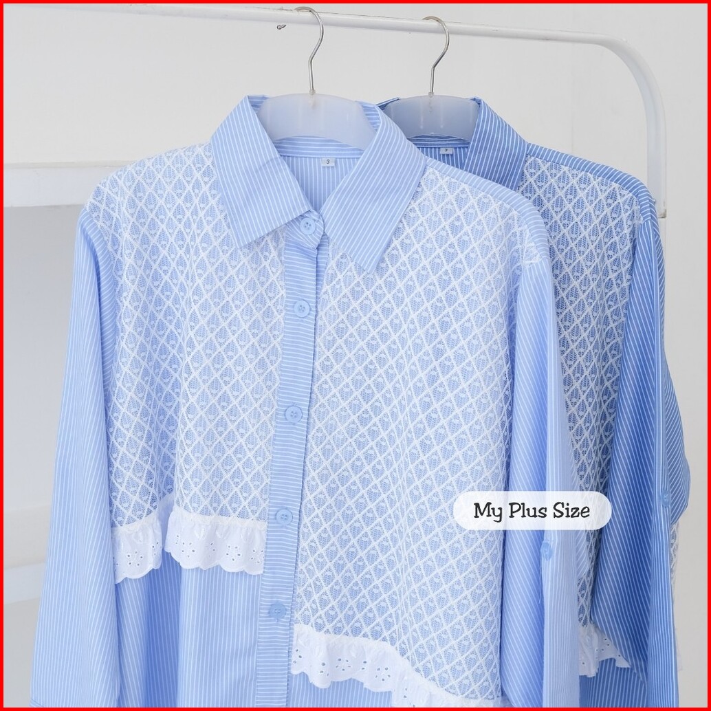 Kemeja Jumbo Wanita Katun Salur Mix Brukat 3814 Ld 125 135 145 Cm