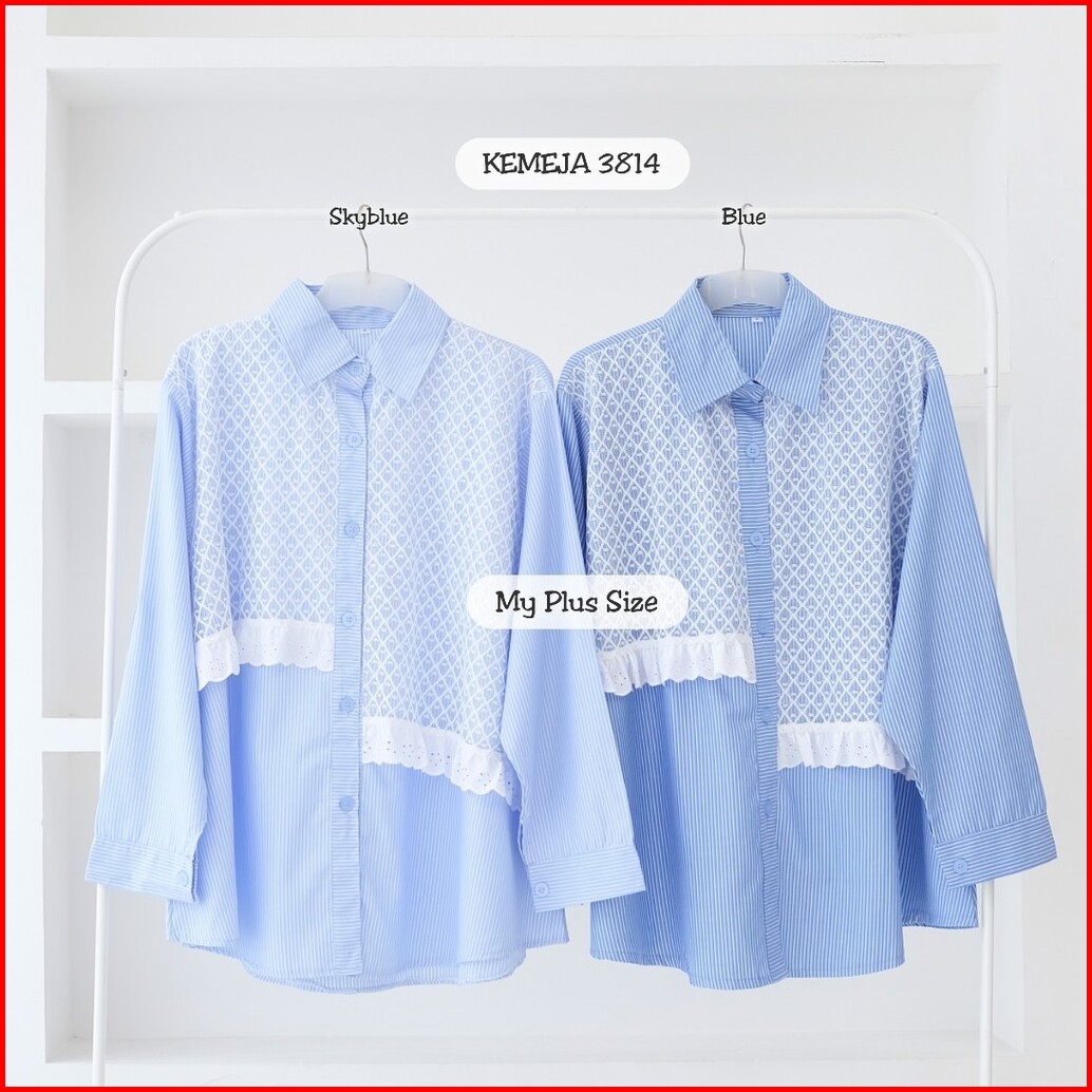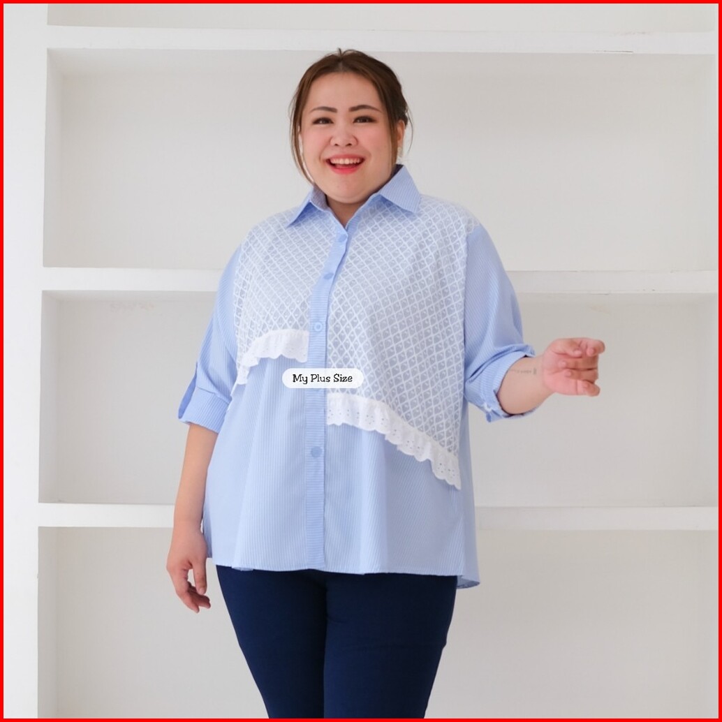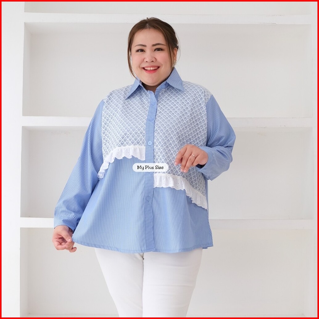 Kemeja Jumbo Wanita Katun Salur Mix Brukat 3814 Ld 125 135 145 Cm