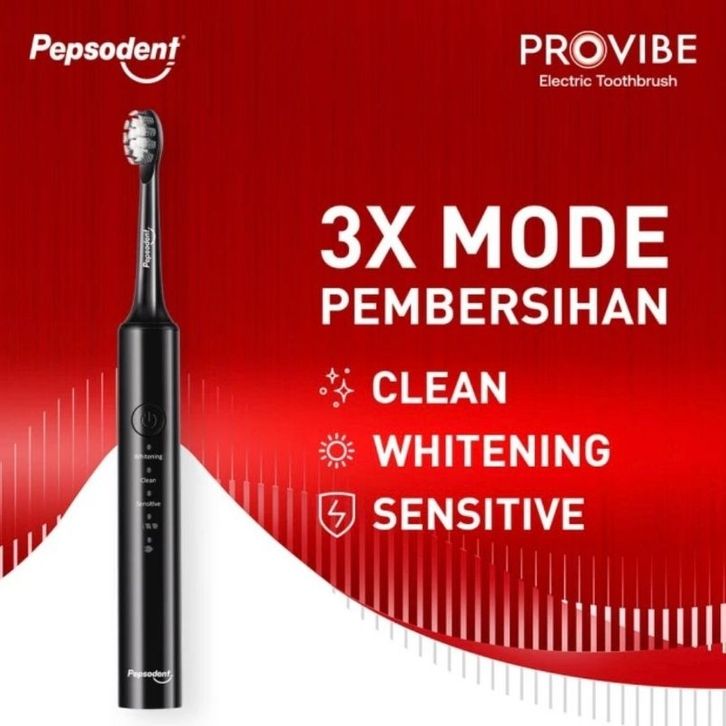 Sikat Gigi Elektrik PEPSODENT Provibe Electric Toothbrush Starter Kit Free Travel Case - Black
