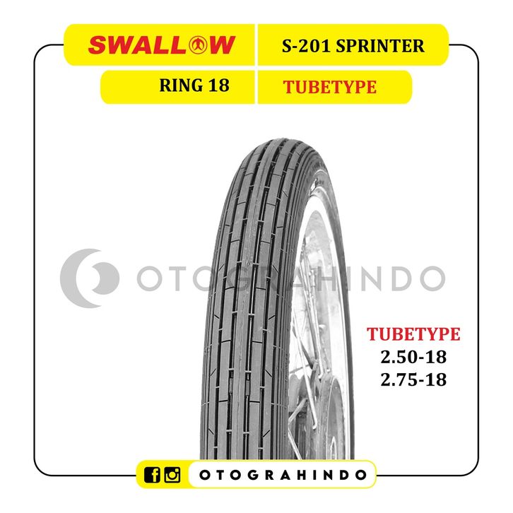 BAN LUAR SEPEDA MOTOR SWALLOW S-201 SPRINTER 2.50 2.75 RING 18 TUBE TYPE
