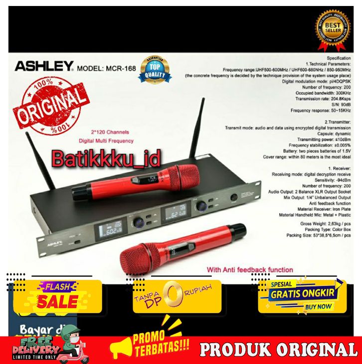 BAGUS MIC WIRELESS ASHLEY MCR 168 MCR168 ORIGINAL WITH ANTI FEEDBACK FUNCTION 3 WARNA