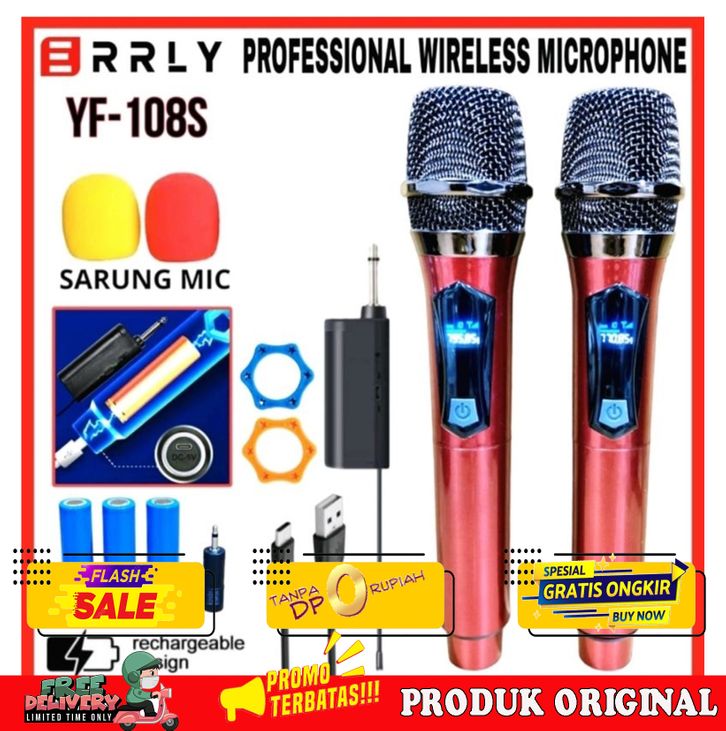 BAGUS MIC MICROPHONE KARAOKE PROFESIONAL WIRELESS YF-108S UHF DOUBLE FREE SARUNG MIC
