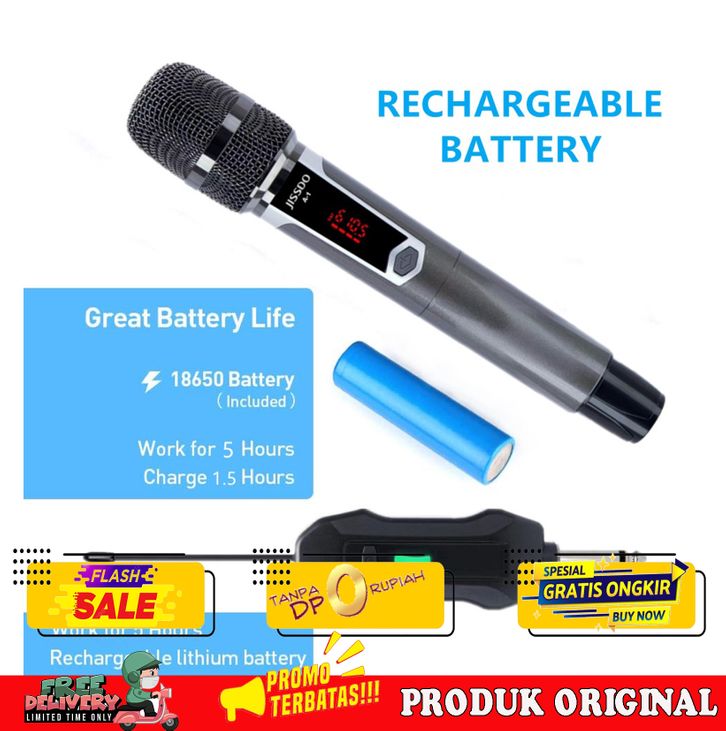 BAGUS WIRELESS MICROPHONE RECHARGEABLE UHF DUAL KARAOKE MIC WITH RECEIVER SYSTEM SET FOR SINGING KARAOKE SPEECH