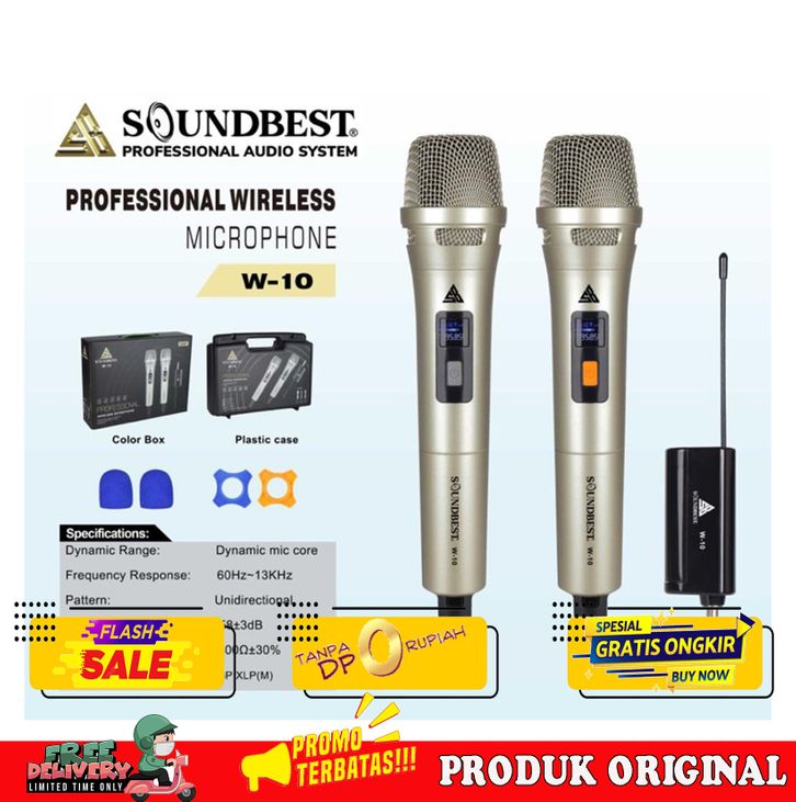 BAGUS MIC WIRELESS SOUNDBEST W-10 ORIGINAL FREE KOPER