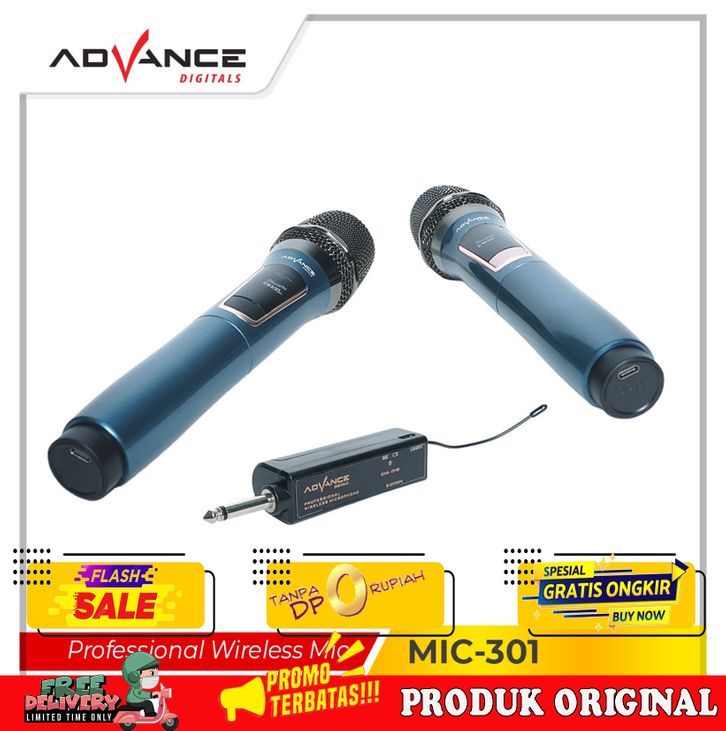 BAGUS ADVANCE MIC-301 DOUBLE DIGITAL MIC WIRELESS MICROPHONE METALIC