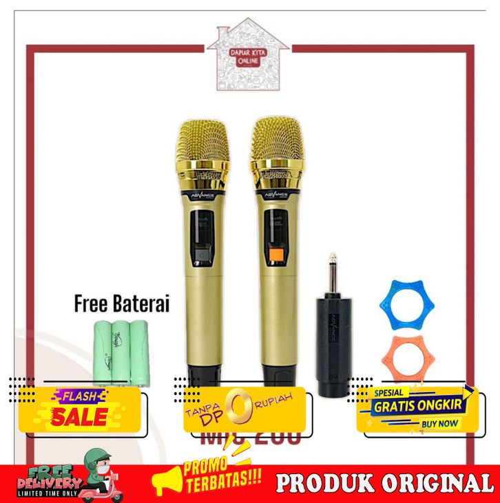 BAGUS ADVANCE PROFESSIONAL MICROPHONE MIC-206 MIC WIRELESS MIKROFON BLUETOOTH GOLD