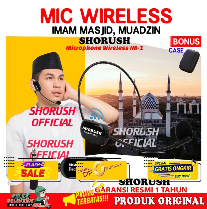 BAGUS SHORUSH IM 1 MIKROFON MIC CLIP ON WIRELESS UHF 2.4G PRESENTASI TUR IMAM MASJID MUSHOLLA