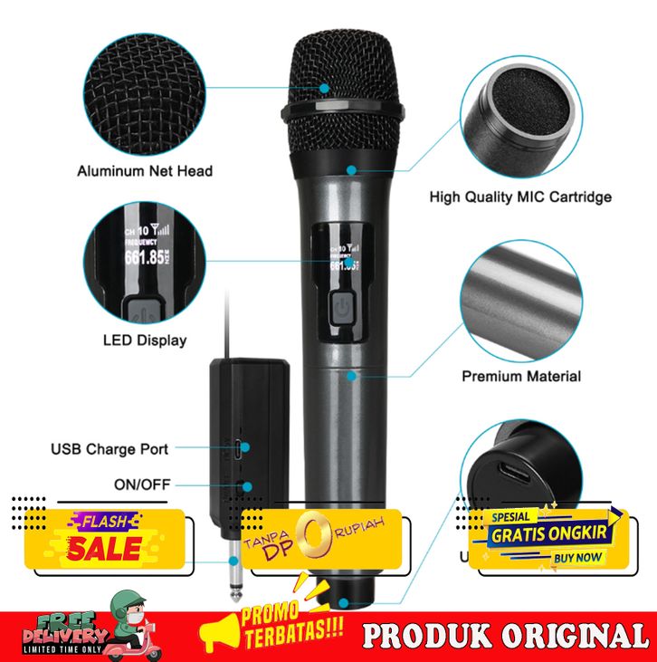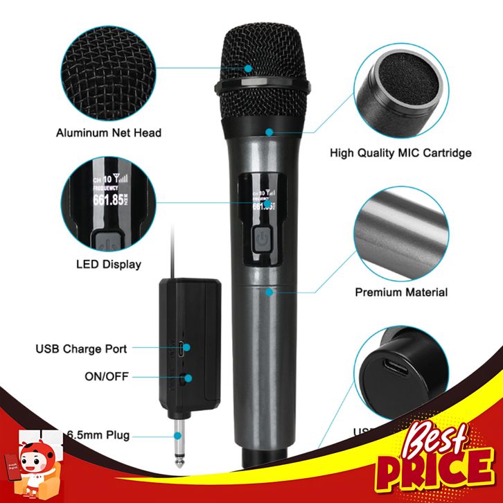 BAGUS MICROPHONE WIRELESS MIC KARAOKE PROFESIONAL TWO HANDHELD MIC WITH RECEIVER CHARGEABLE