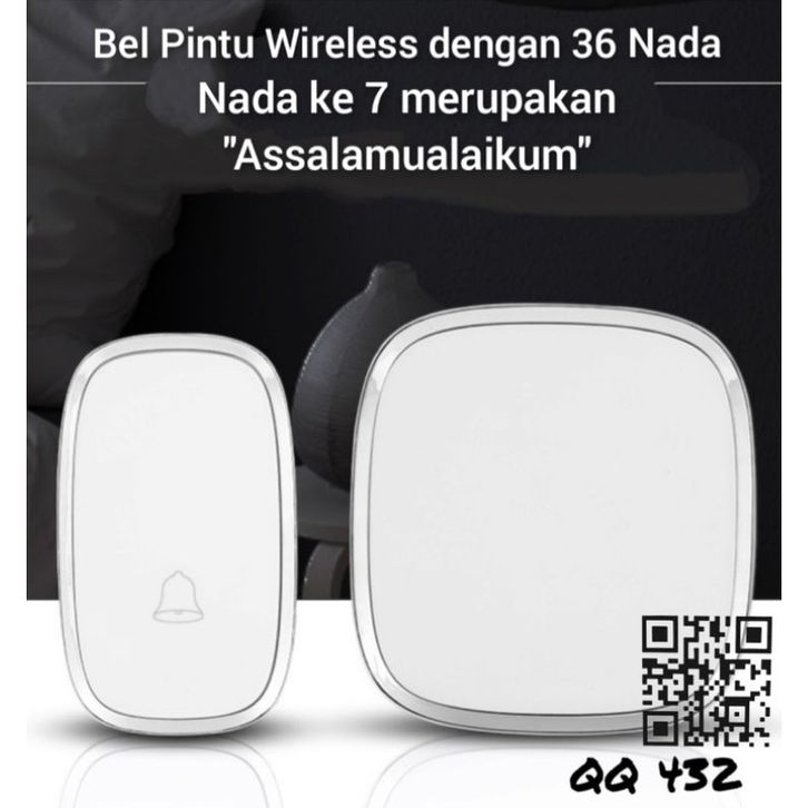 Bel Rumah Wireless Bel Assalamualaikum Door Bell Waterproof Pintu 1 Receiver Bel Pintu Wireless 300M IP44 dengan 36 Nad