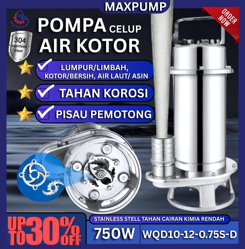 MAXPUMP POMPA CELUP AIR KOTOR AIR LAUT ASIN 2INCH 0.75KW 220V PISAU PEMOTONG SEPTICTANK FULL STAINLESS LUMPUR / KIMIA
