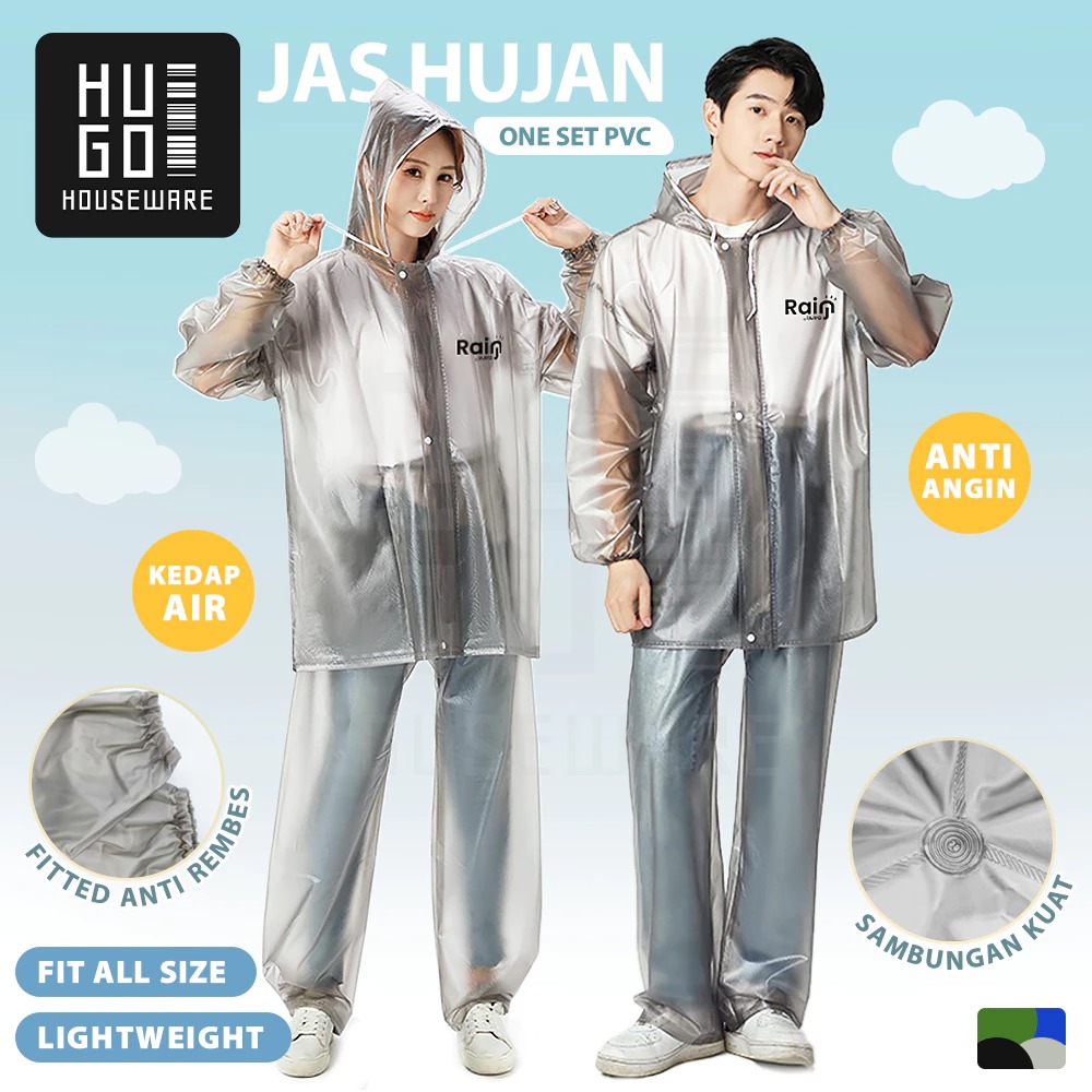 HUGO Jas Hujan Raincoat Pria Wanita Dewasa Terbaik Bahan PVC Elastis Anti Rembes Best Quality