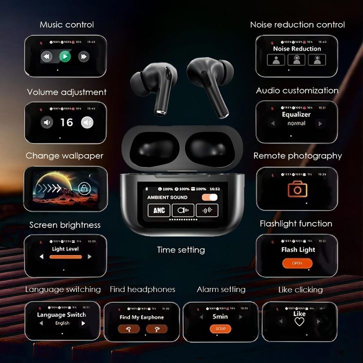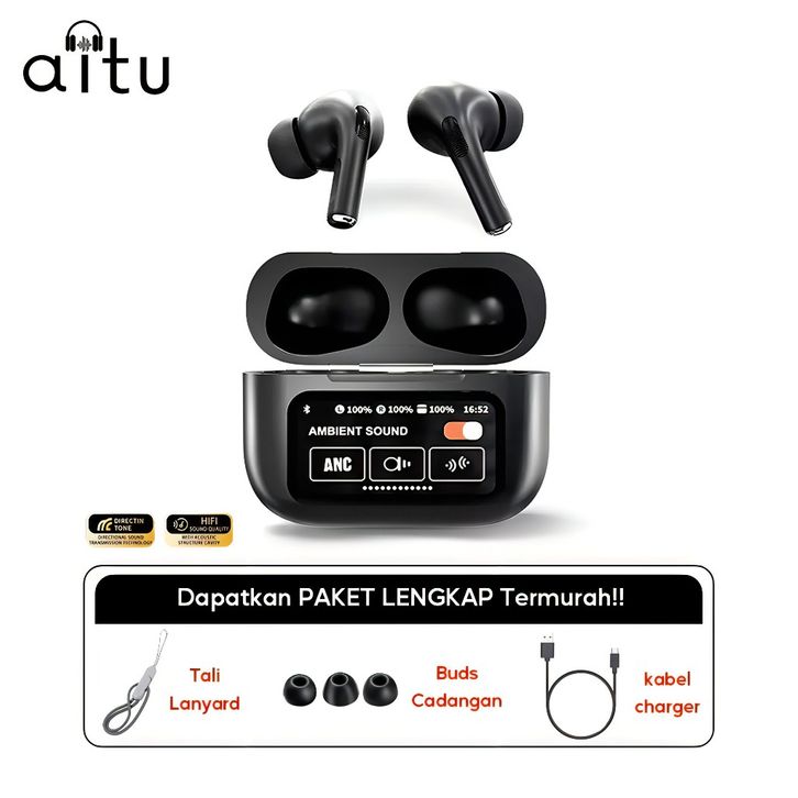 [Star] Headset bluetooth full bass Aitu Pro Touch Screen ANC True Wireless Earphone Noise Reduction