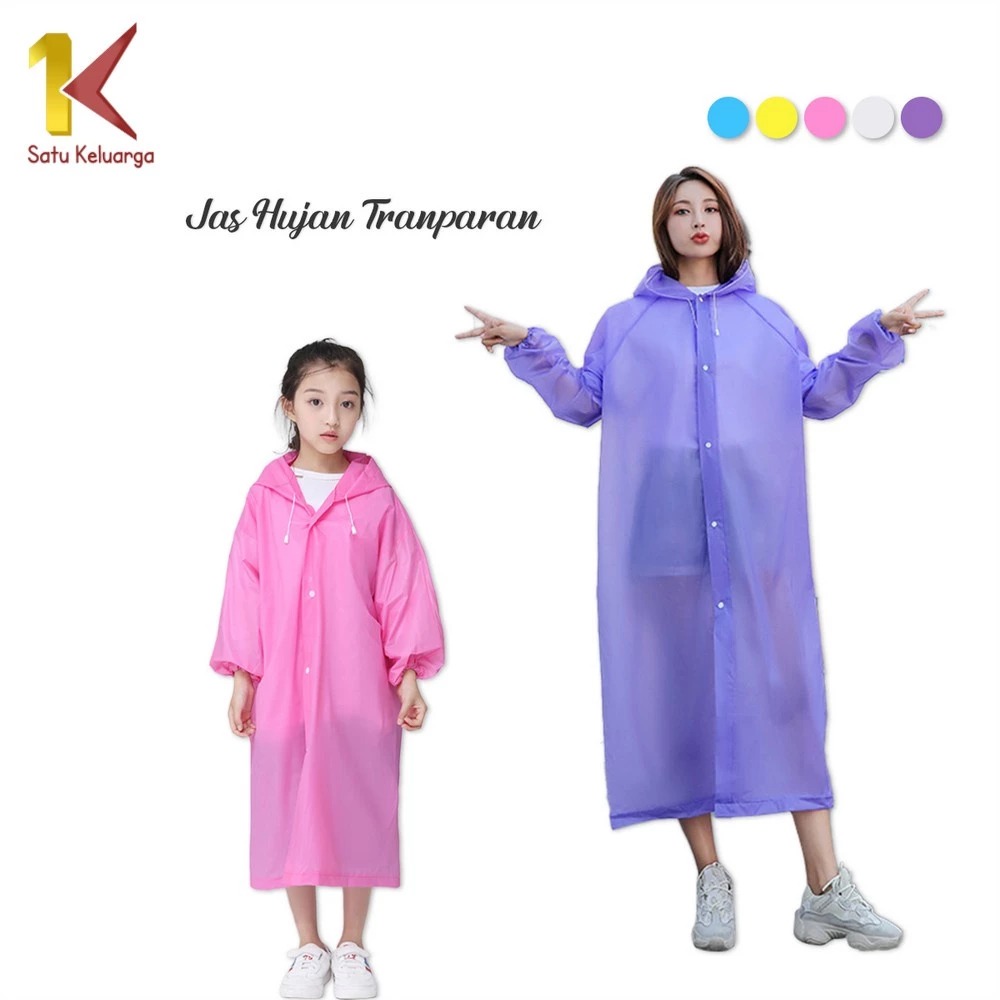 Jas Hujan Terusan C412 C413 Mantel Hujan Anak Dan Dewasa Semi Transparan Polos Bahan EVA RAINCOAT BerkualitasJas Hujan T