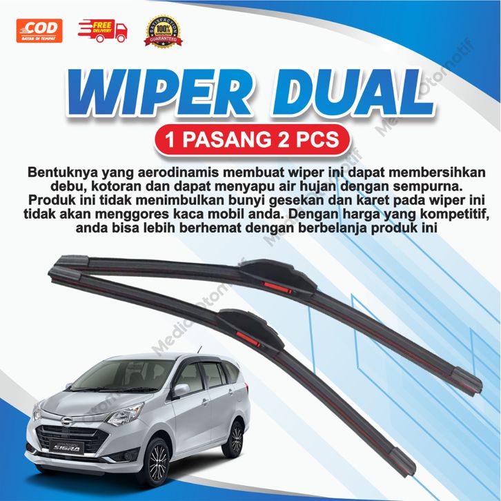 Wiper Mobil Sigra, Calya, BRV Dual Karet Dual Blade Premium Tanpa Rangka Besi 22 dan 16 Inci Termurah Bisa