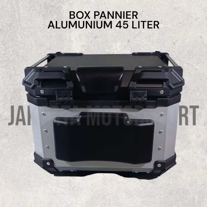 MHR Racing Top Case Box Alumunium 45L Silver Quick Release Tail Box Motor Touring Kotak + Sandaran