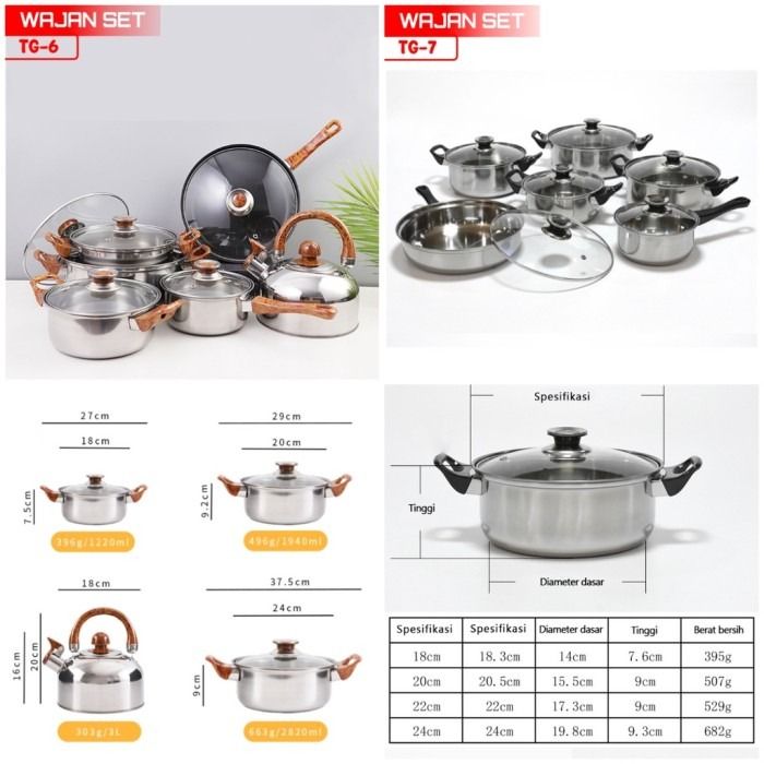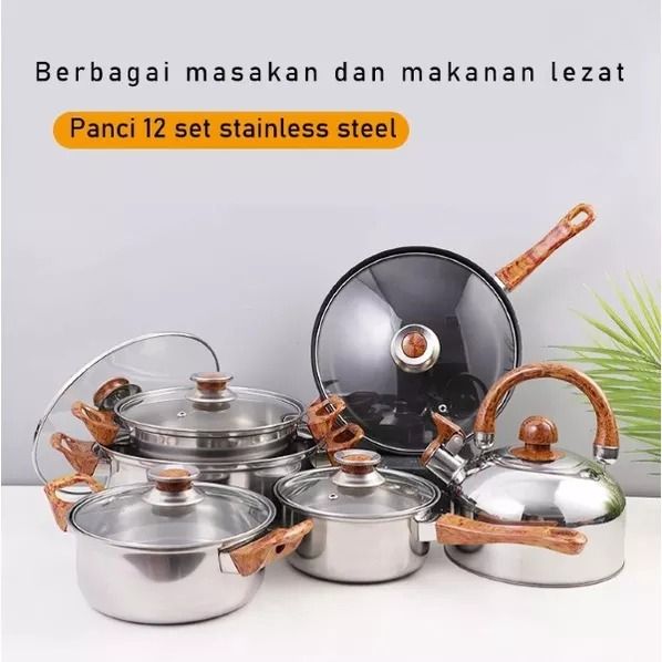 Panci Stainless TERMURAH Panci set stainless steel 12 pcs Anti lengket dan mudah dibersihkan panci alat masak satu set