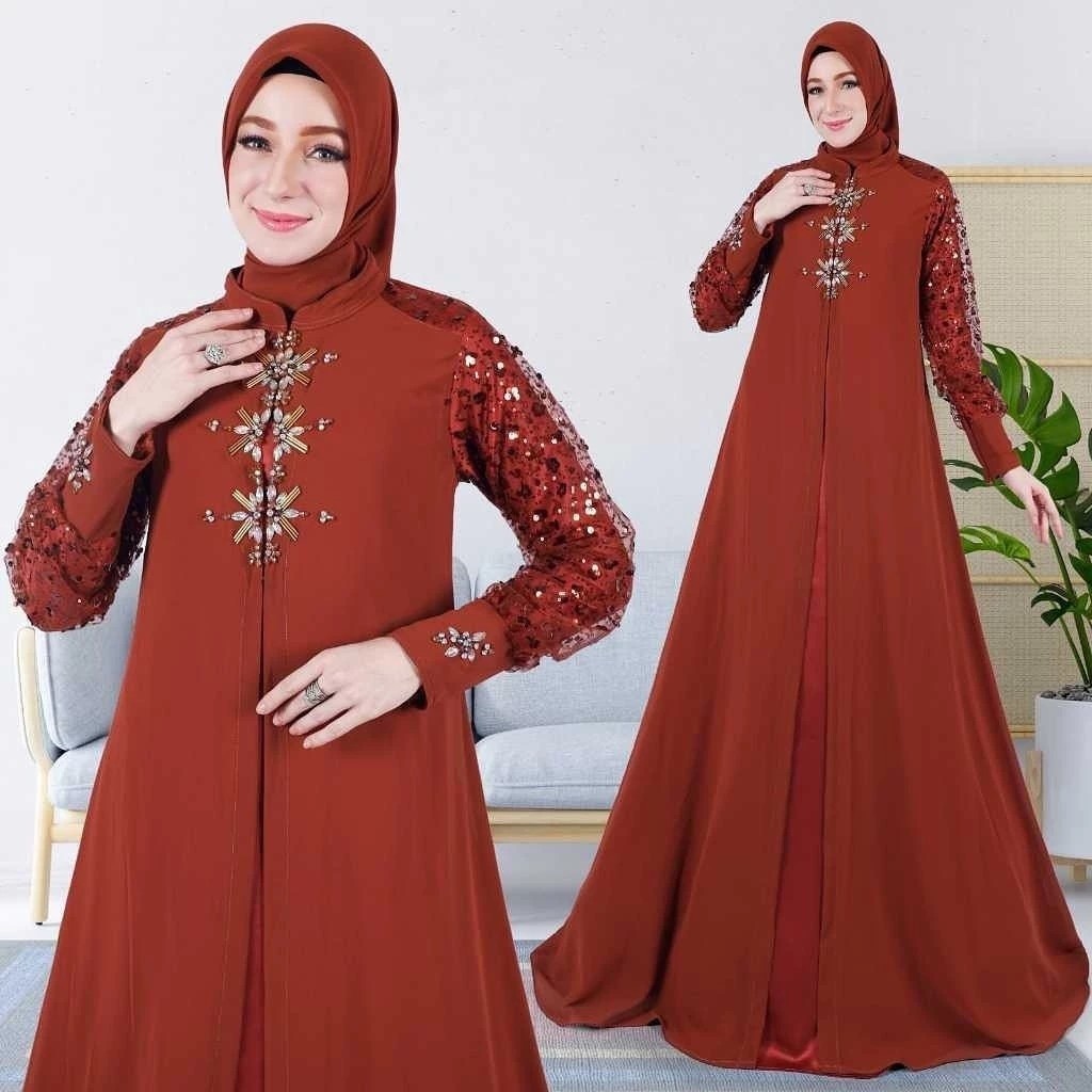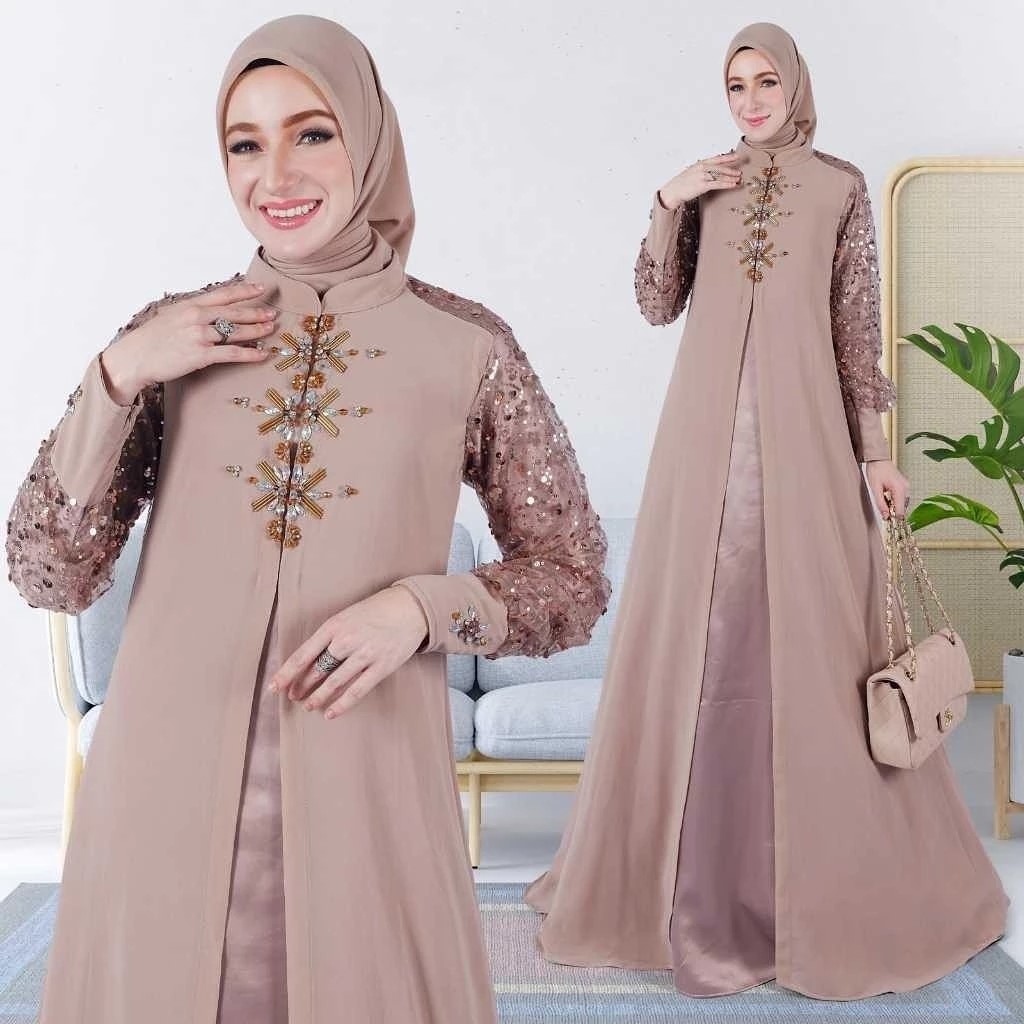 Outfit - Nurhaliza Dress Set Outer 2in1 Wanita Muslim Velvet Mix Babydoll Mix Squin Premium