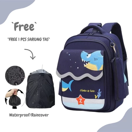 Raja Tas Anak Ransel Sekolah Laki-laki Perempuan Sd Tk Smp Motif Kartun HIU