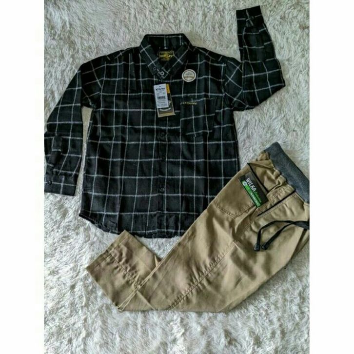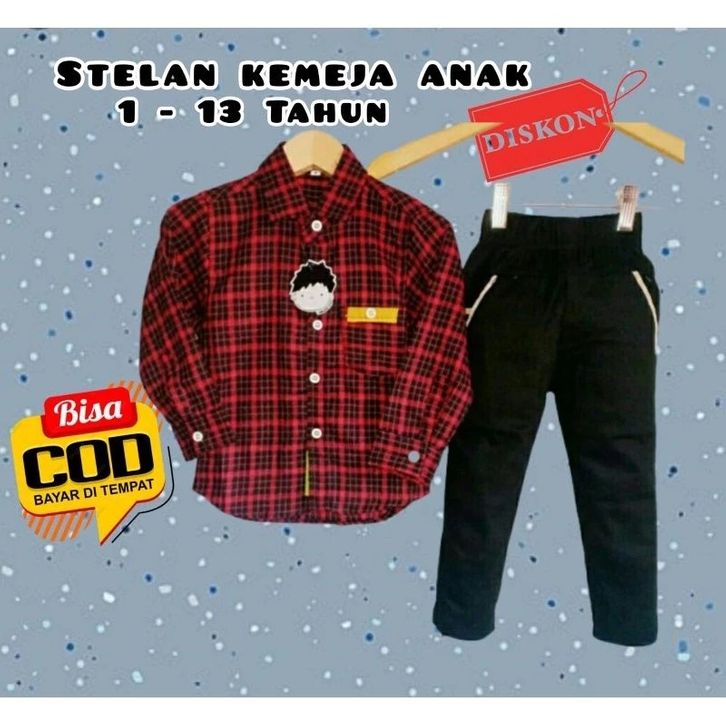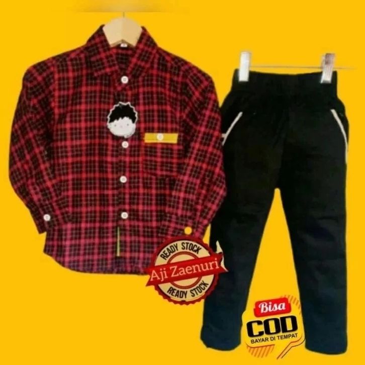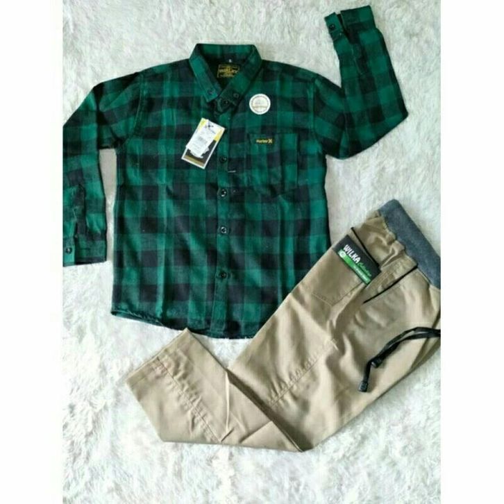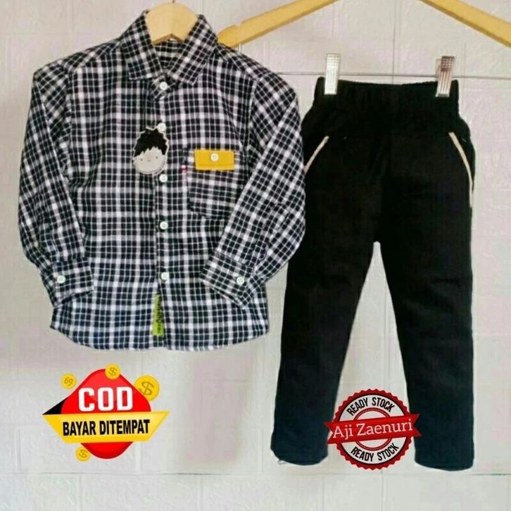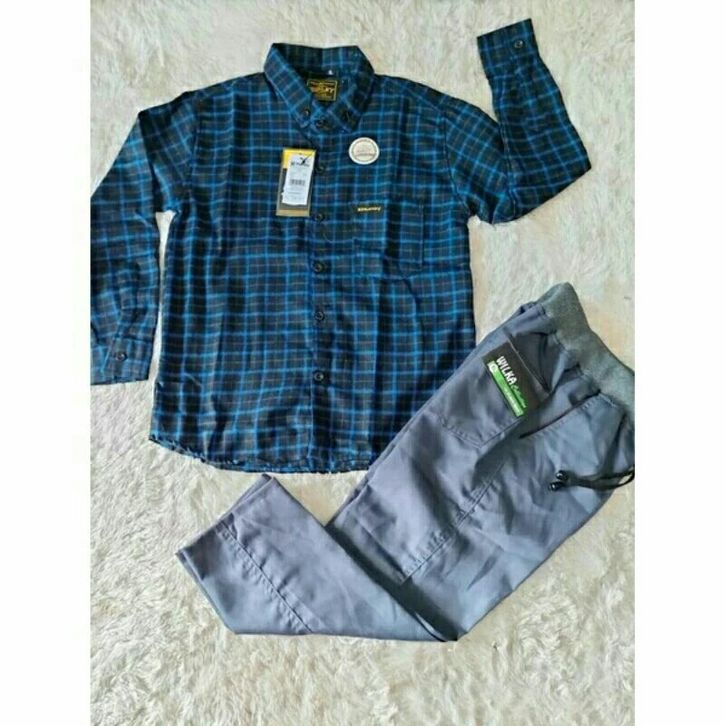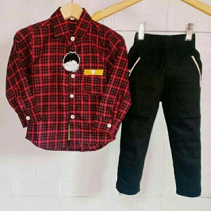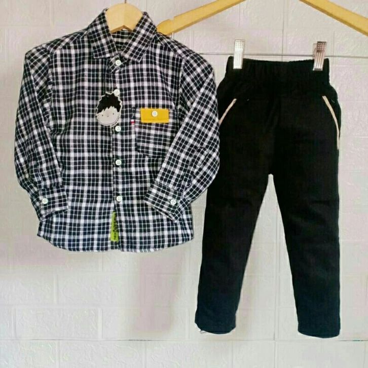 Setelan Kemeja Flanel Lengan Panjang Celana Chinos Panjang Setelan Anak Laki Laki 1-14 Tahun Fashion Anak Cowok