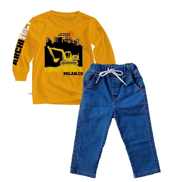 Setelan Kaos Anak Tangan Panjang Rib Celana Jeans Bahan Tebal Cotton Combed 24s Premium Pakaian Anak Cowok