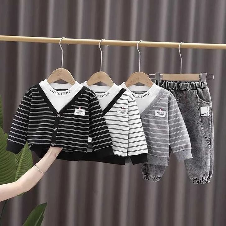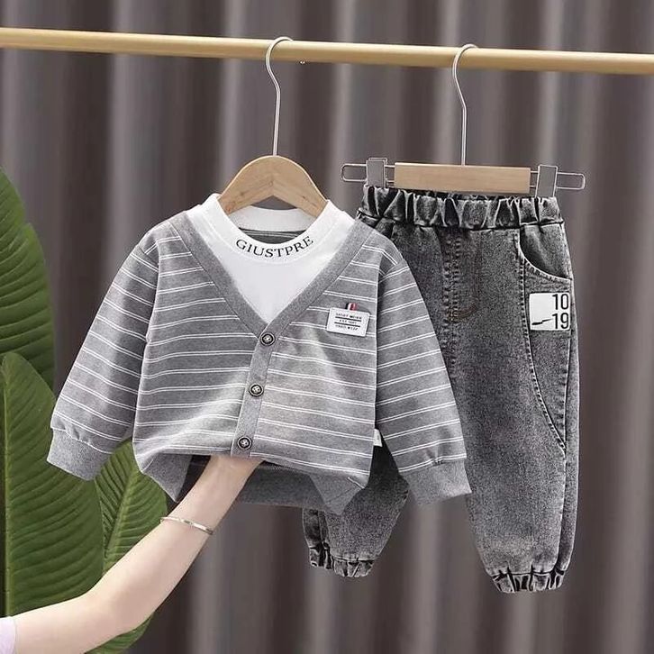 Setelan Anak Laki Laki Lengan Panjang Motif Cardigan Set Baju Anak Laki Laki 4 Tahun Pakaian Anak Laki Laki Fashion Ana