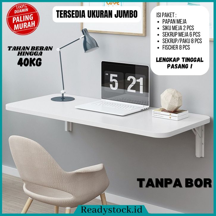 Meja Lipat Dinding Tanpa Bor Minimalis Serbaguna - Ukuran 120x40 / 100x40 / 80x60 / 80x50 / 80x40 / 60x40
