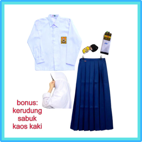 Seragam Sekolah SMP Rempel Panjang Bonus Aksesoris Lengkap Seragam SMP Anak Perempuan
