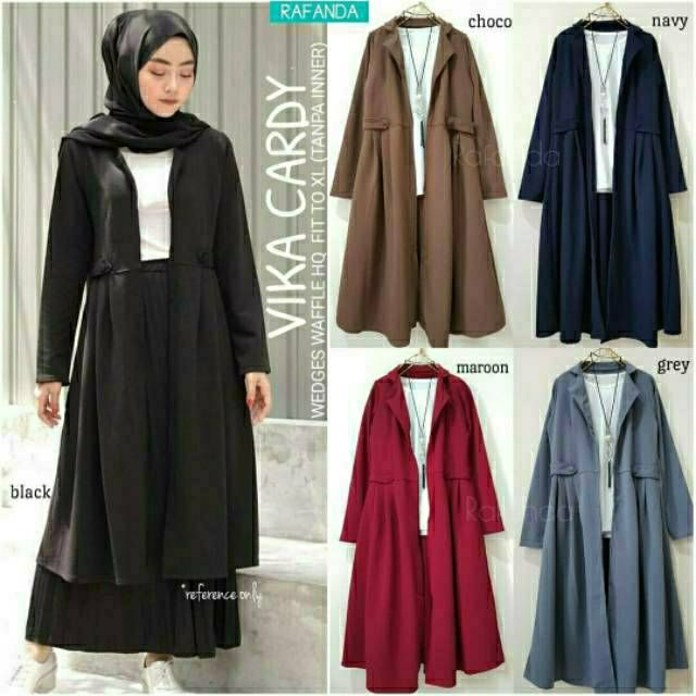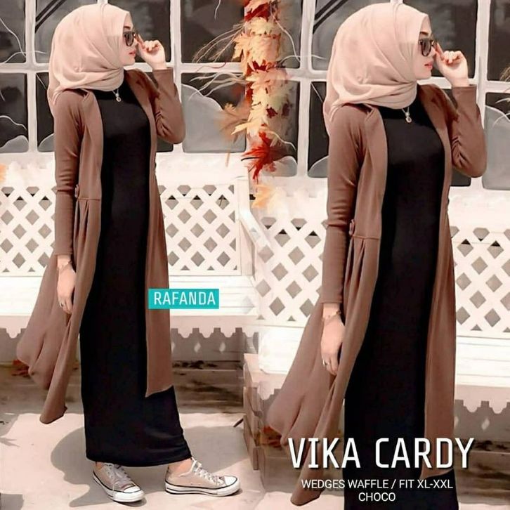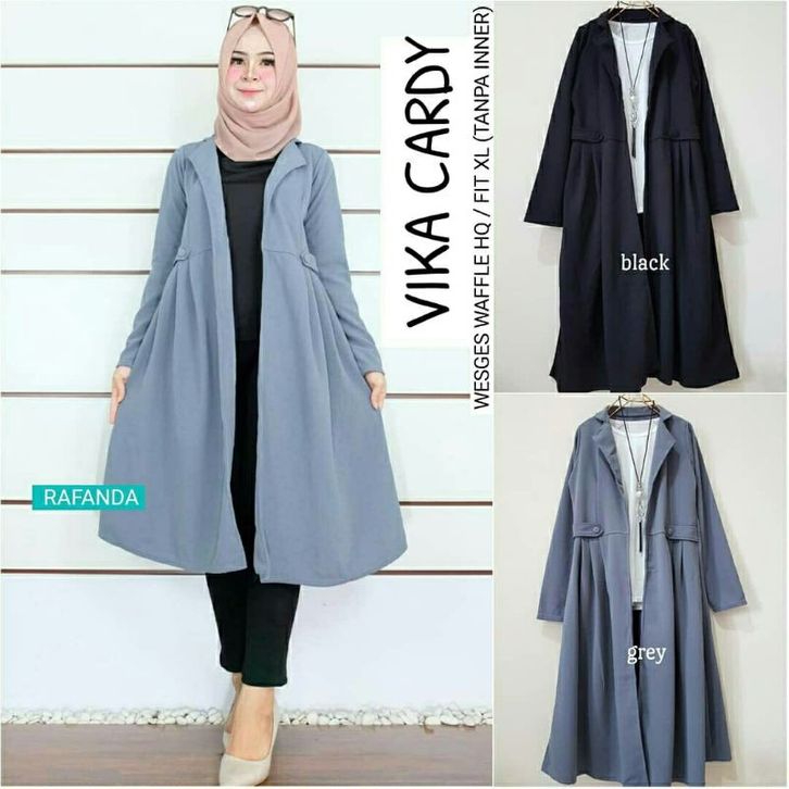 Outer Wanita Long Cardigan Korea Kekinian Bahan Wedges Waffle Fit to XL LD 98-110