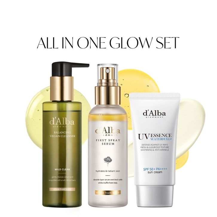PAKET SKINCARE d'Alba Essentials (Vegan Cleanser + Spray Serum 100ml + Essence Suncream)