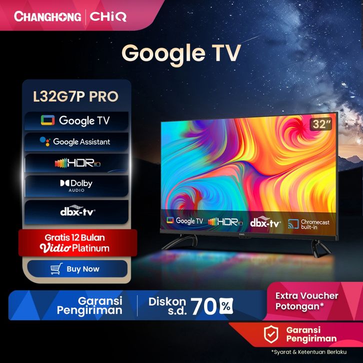 【Google TV】CHiQ Smart TV 32 inch HDR10+DBX Dolby Audio Google Assistant Garansi Resmi Best Seller Terbaru (L32G7P Pro)