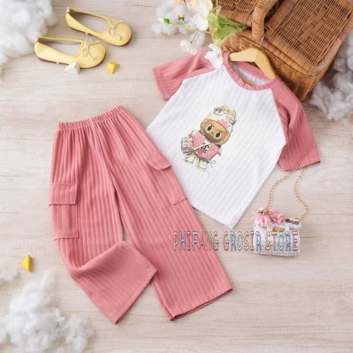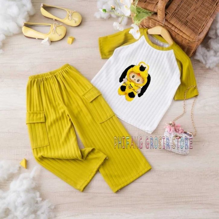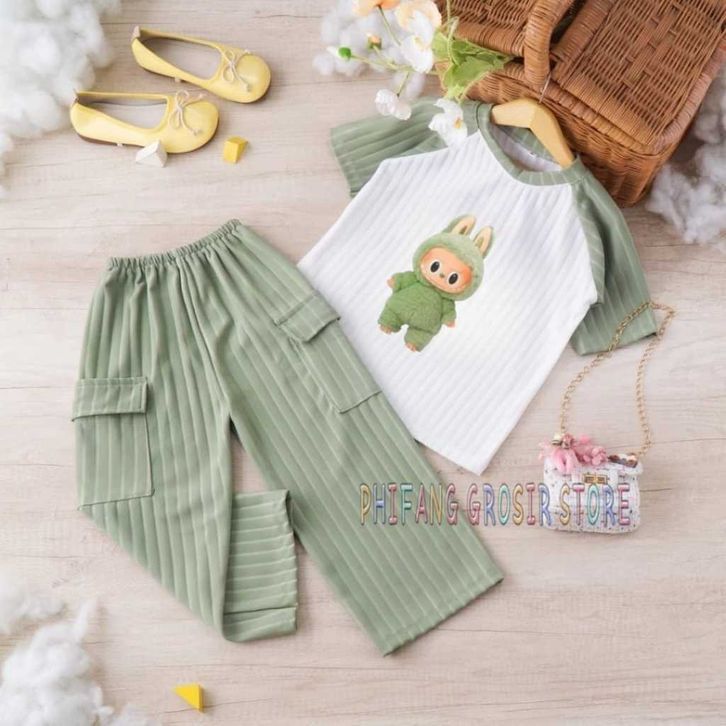 GRATIS ONGKIR SETELAN KNIT CARGO LABUBU ANAK 1-10 TAHUN SETELAN BAJU ANAK