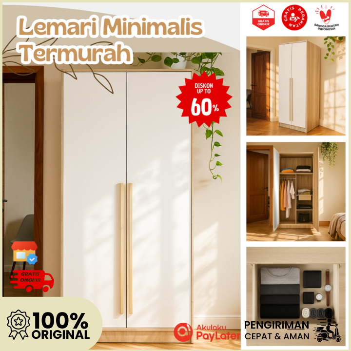 Lemari Pakaian Kayu 2 Pintu Grade A Sonoma Oak Minimalis Modern Serbaguna Murah Terbaru Berkualitas 2024