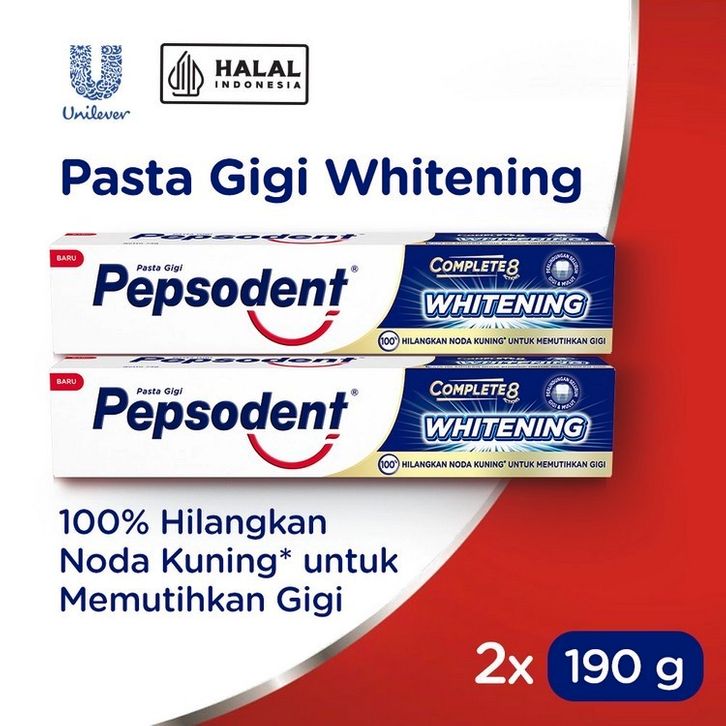 Pasta Gigi Pepsodent Pasta Gigi Complete 8 Plus Whitening 190 g x2