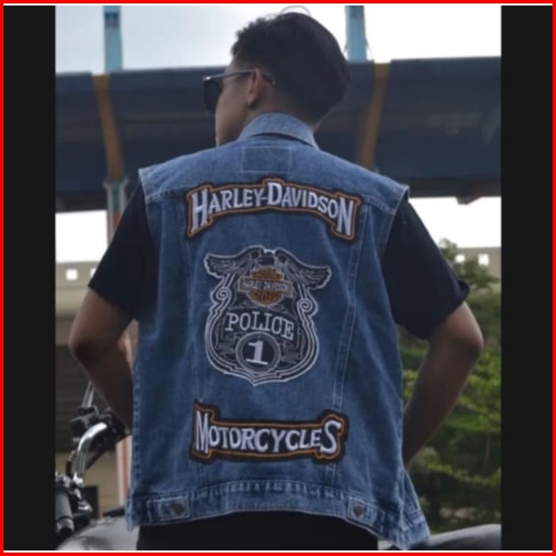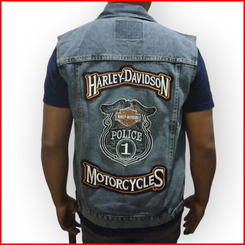 Rompi Jean S Motor Harley Sandwash Vest Body Protector Bikers Sakatsu Distro Size M L Xl Xxl Xxxl