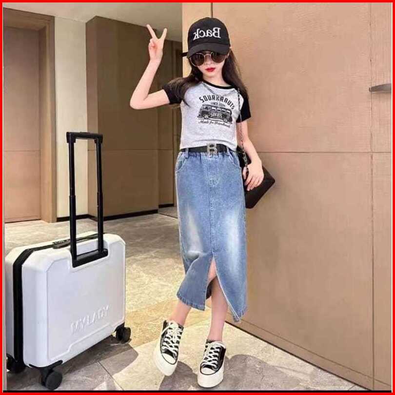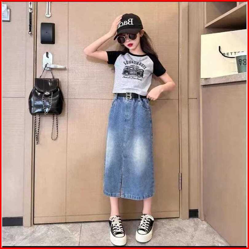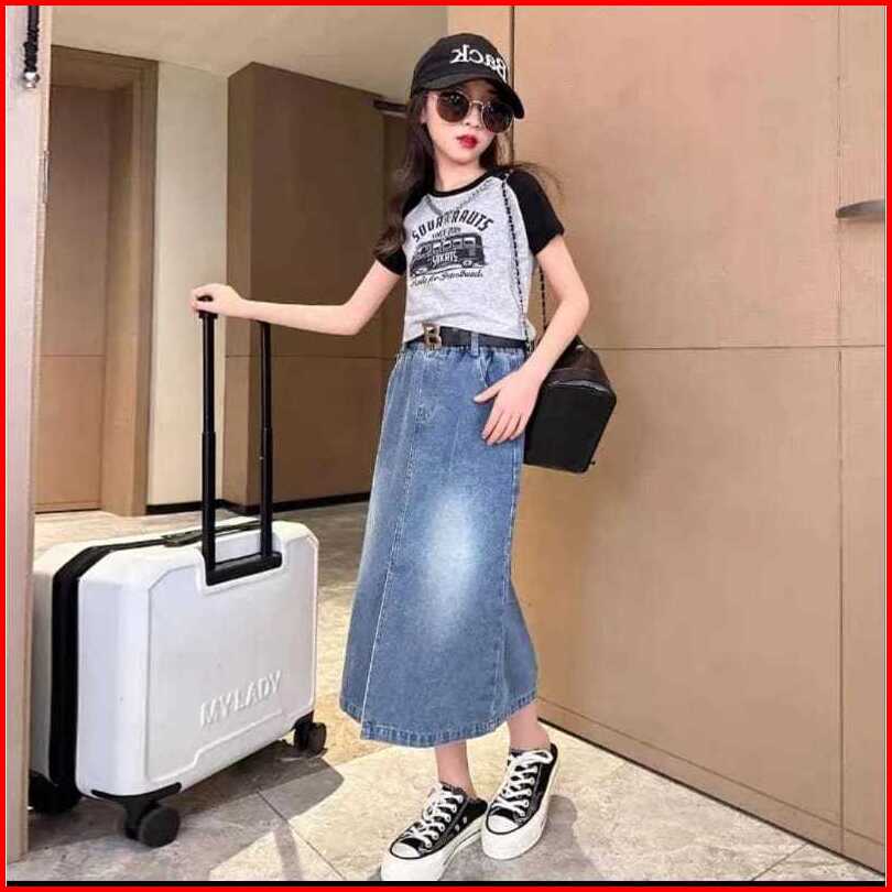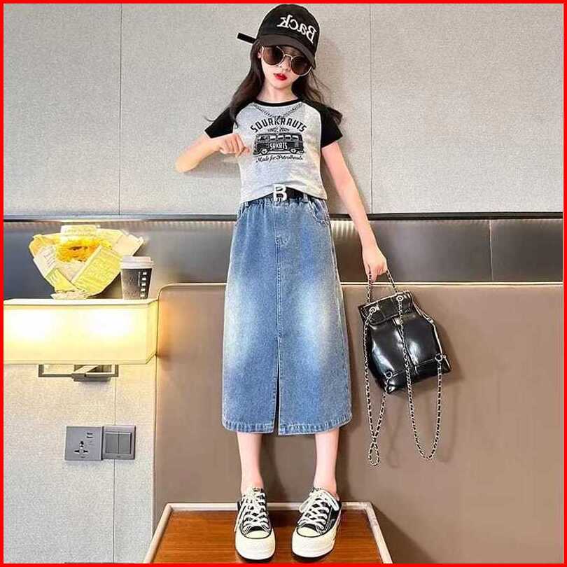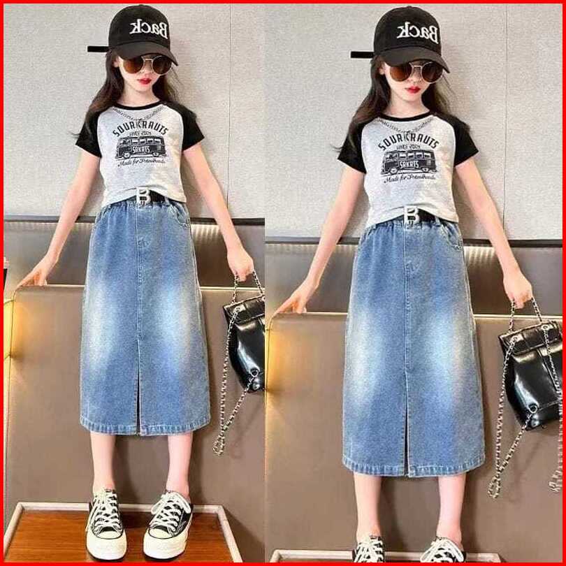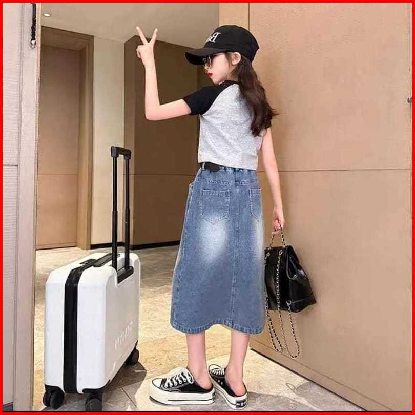 Rok Jeans Anak Perempuan Model Rok Belah Tengah Size Tanggung Model Terbaru Fashion Untuk 6 - 15 Tahun